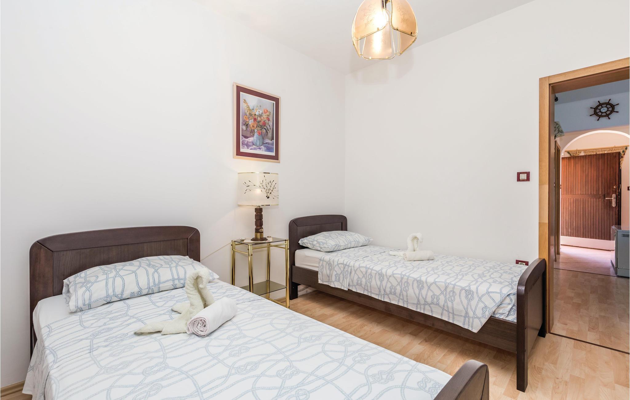 Dieses Ferienhaus liegt direkt am Meer, in ruhiger Lage, fernab vom Stadtgetümmel. Es besteht aus zwei Etagen, die durch Außentreppen miteinander verbunden sind. Mit insgesamt 5 Schlafzimmern ist diese Unterkunft ideal für zwei Familien oder eine Freundesgruppe, die Ihren Urlaub gemeinsam verbringen wollen. Auf dem Betonplateau vor dem Haus befinden sich Sonnenliegen direkt am Meer. Für Ihr Gummiboot oder ein kleines Motorboot steht Ihnen eine Bootsanlegestelle zur Verfügung. Wandern Sie durch den Nationalpark Paklenica und lernen das Velebit Gebirge kennen, eines der schönsten in Europa. Besuchen Sie auch die schöne Stadt Zadar.