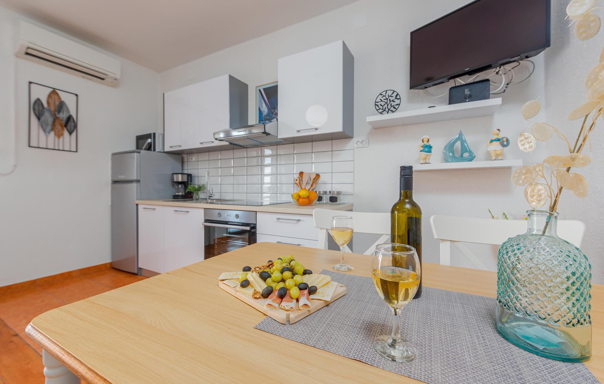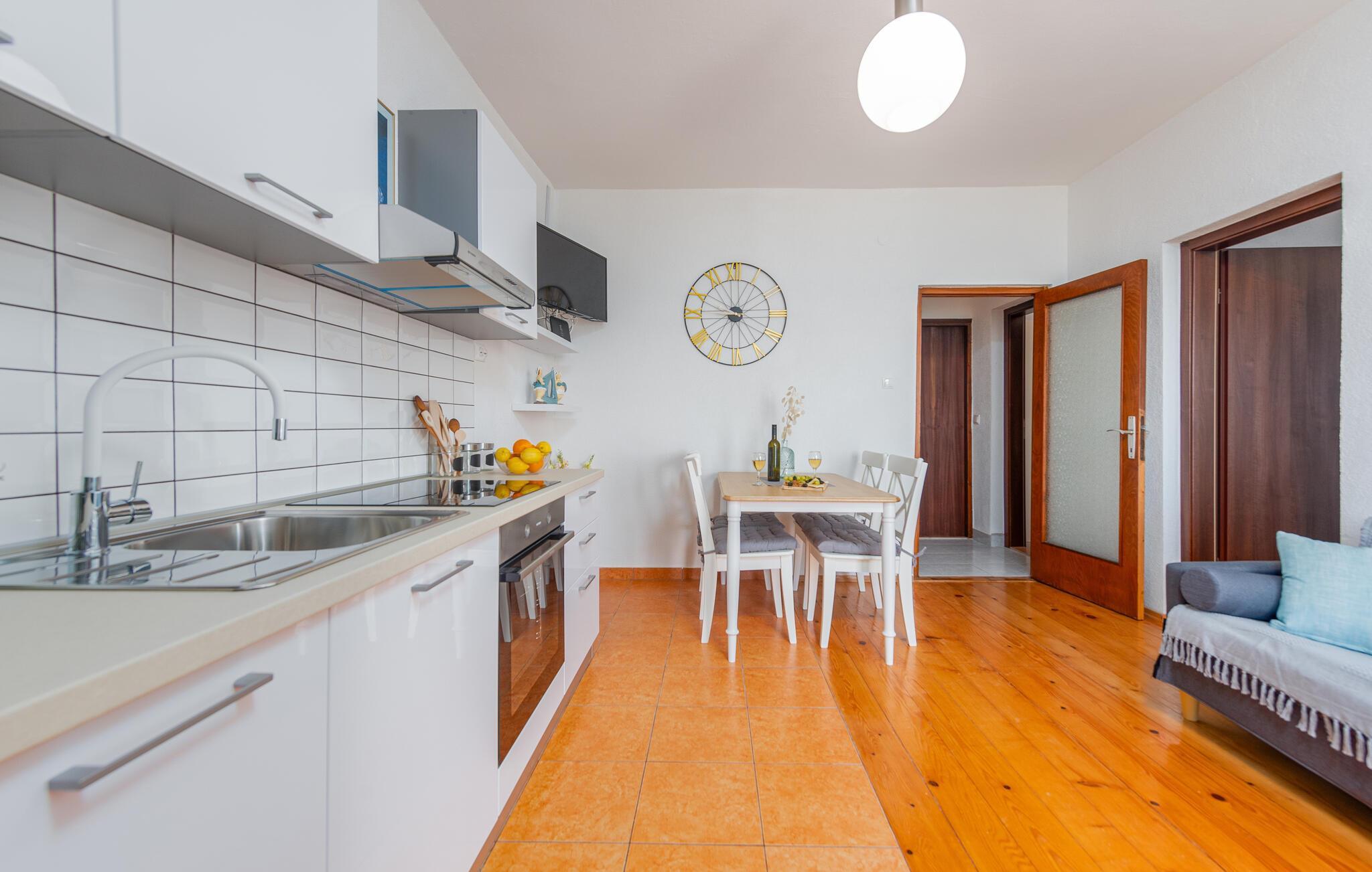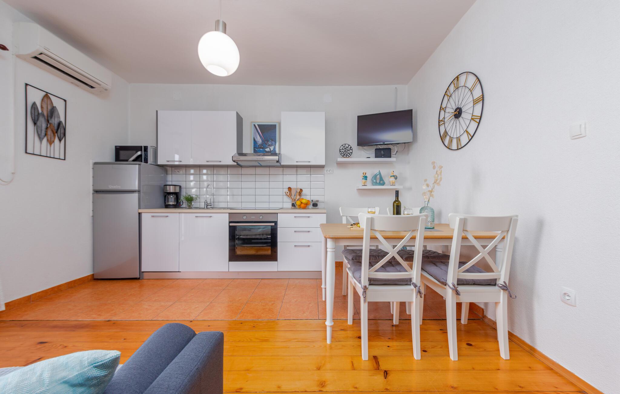 In dem kleinen Dorf Prizna, bekannt als Hafen für die Insel Pag, liegt dieses kleine Ferienhaus. Es ist aufgrund seiner Lage ideal für diejenigen, die in ihren Ferien die Ruhe bevorzugen und gerne am Strand sind, denn der Strand liegt direkt vor dem Haus. Das Ferienhaus eignet sich optimal für eine kleine Familie oder ein Paar.