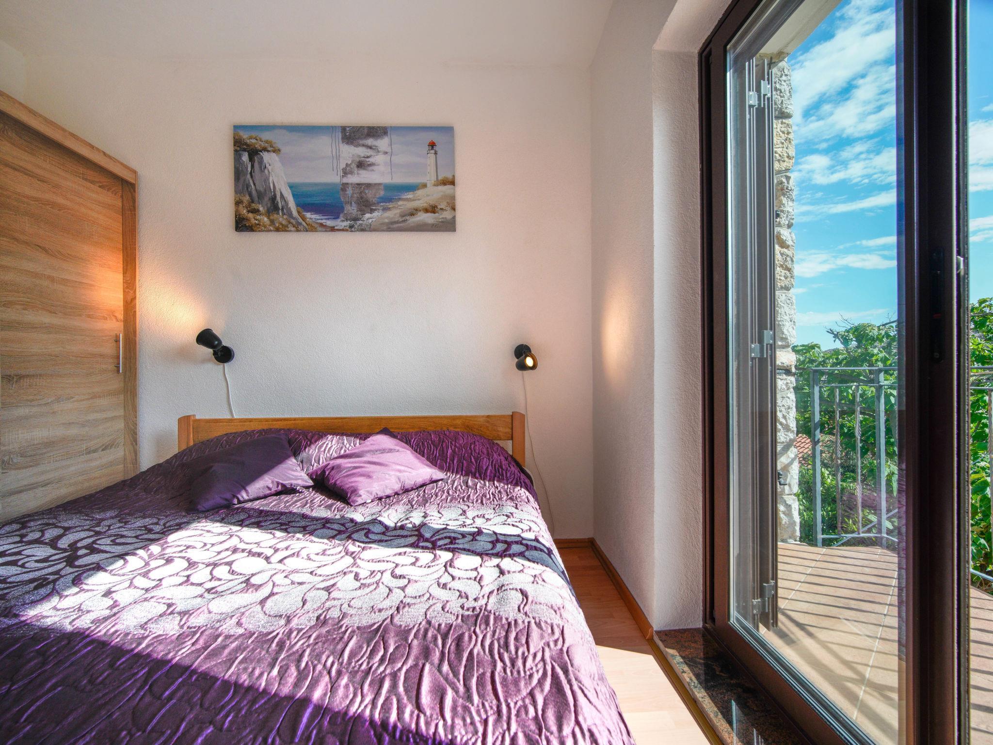 4-room house 76 m2 on 2 levels. Living/dining room with TV (flat screen), air conditioning. Exit to the terrace. Open kitchen (1 hot plate, oven, dishwasher, Gas stove, 3 gas rings, kettle, electric coffee machine). Exit to the terrace. Sep. WC. Upper floor: entrance hall with air conditioning. 1 room with 2 beds (90 cm, length 200 cm). Exit to the balcony. 1 room with 1 french bed (160 cm, length 200 cm). Exit to the balcony. 1 room with 1 x 2 bunk beds (90 cm, length 200 cm). Shower/bidet/WC. No heating option. Balcony 8 m2. Side view of the sea. Facilities: hair dryer. Internet (WiFi, free). Please note: non-smoking house. Maximum 1 pet/ dog allowed. Fire extinguisher.