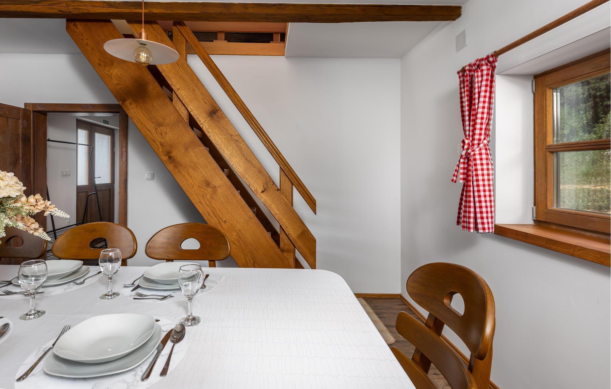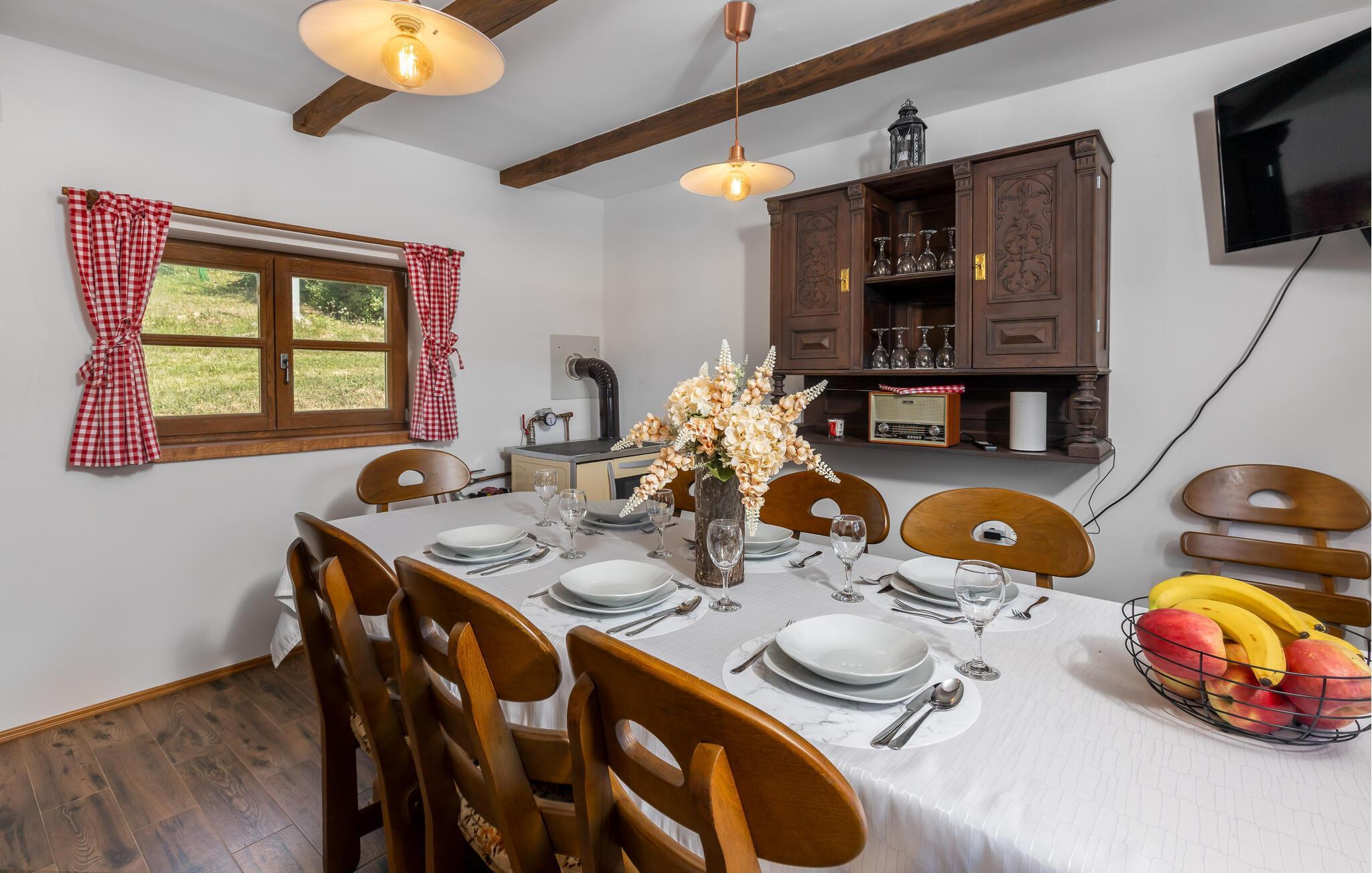 Verbringen Sie unvergessliche Stunden in diesem rustikalen Haus inmitten einer grünen Hügellandschaft. Holzbalken, rustikale Möbel und eine bequeme Sofalandschaft schaffen eine charmante Atmosphäre, in der Sie neue Kraft sammeln können. Entspannen Sie sich beim Lesen, Musikhören oder bei einem guten Gespräch. Abends können Sie in der modernen Küche selbst kochen und zum Essen ein gutes Glas kroatischen Wein servieren.