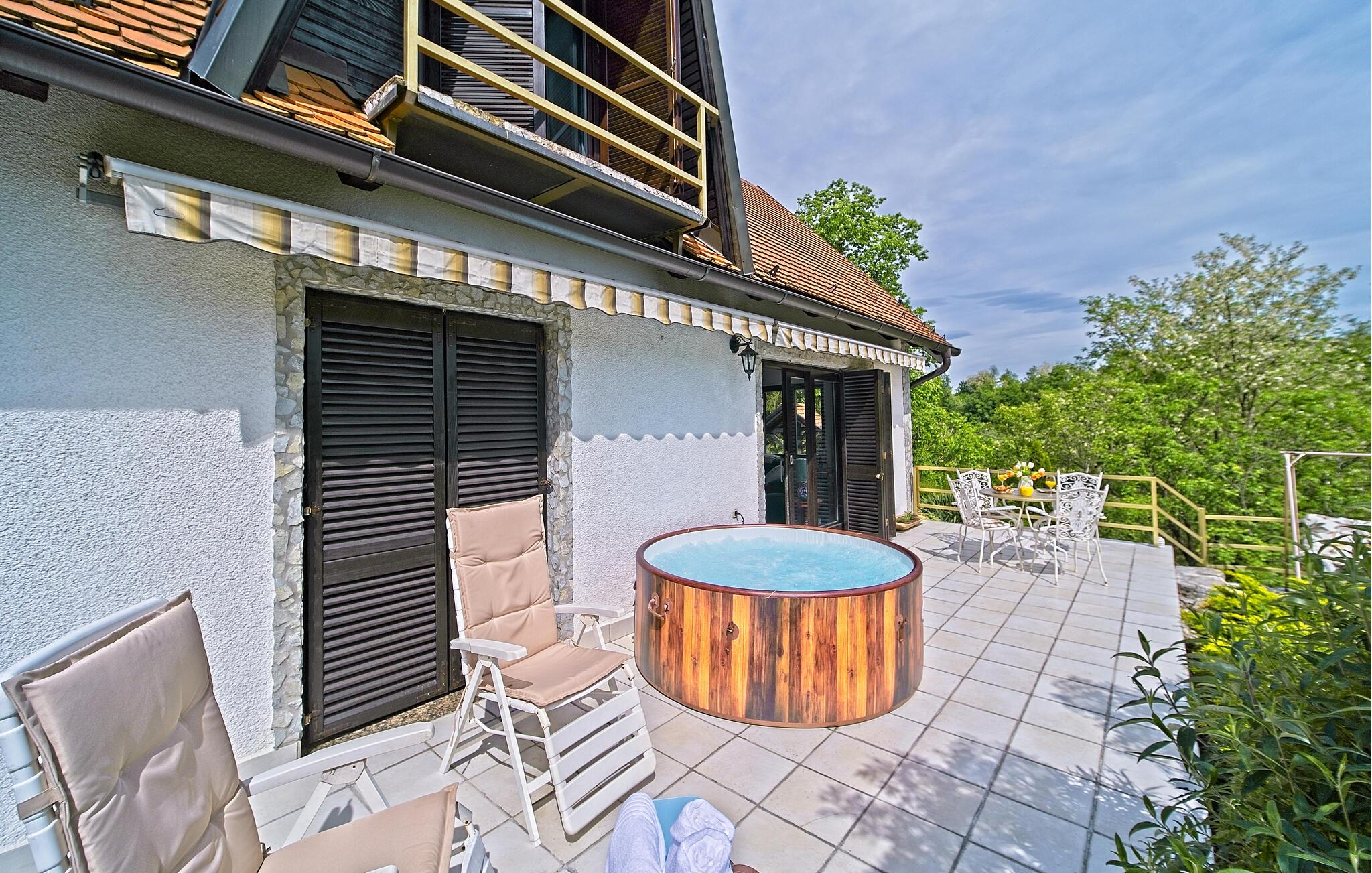 Lassen Sie sich auf den Terrassen vom fantastischen Blick auf die Landschaft verzaubern. Nehmen Sie die Mahlzeiten im Freien ein, hier draußen können Sie auch gemütlich grillen und ein Bad im Whirlpool unter freiem Himmel genießen, Ihre Kinder sind dank zahlreicher Spielgeräte bestens unterhalten.