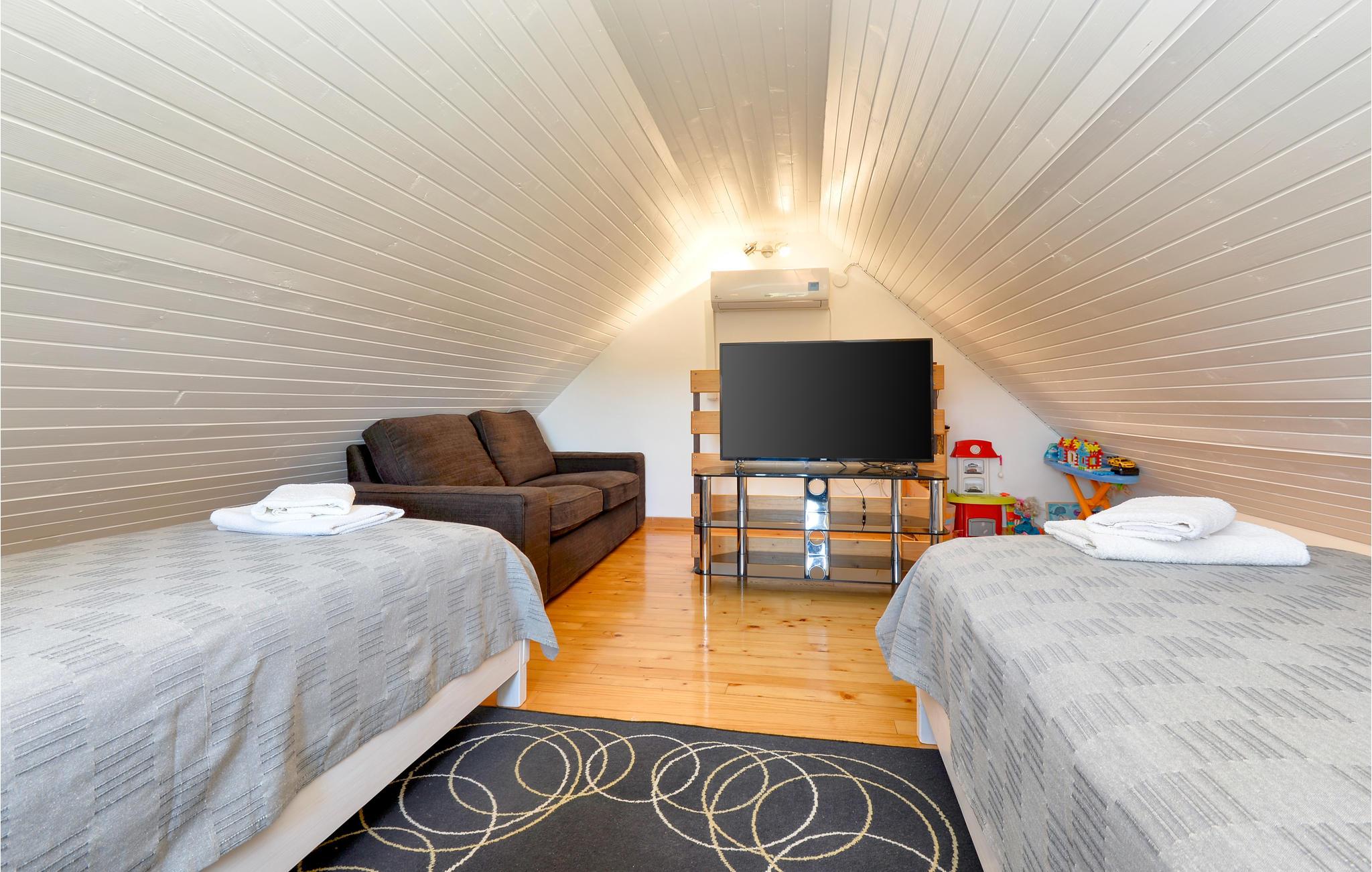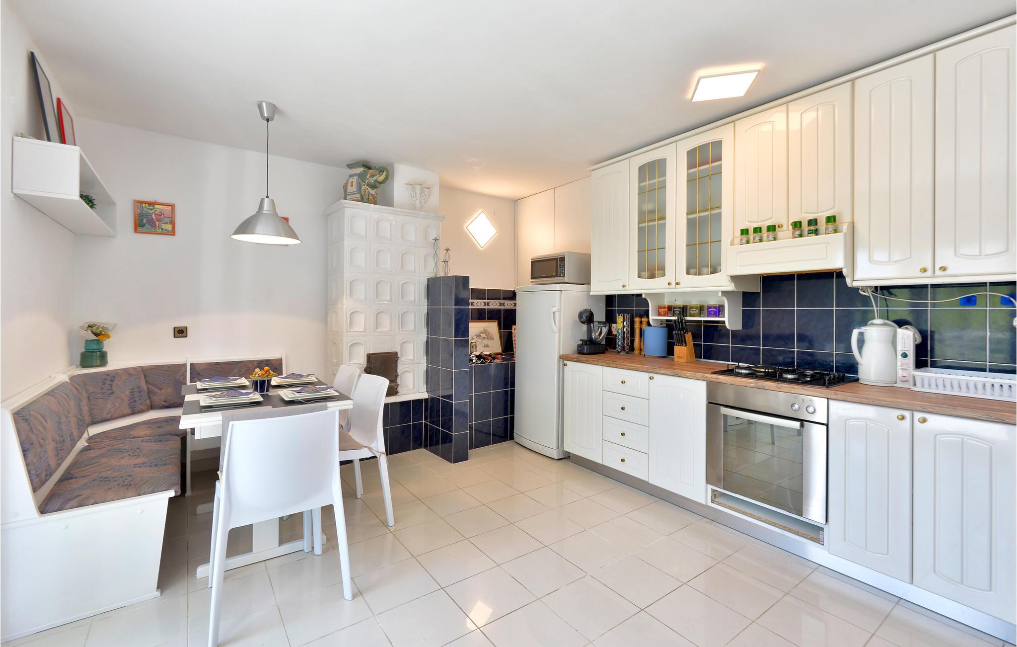 Das Haus erstreckt sich über mehrere Etagen und ist freundlich eingerichtet. Im Erdgeschoss befindet sich die Küche, wo Sie zusammen die Mahlzeiten zubereiten und gemütlich sitzen können. In der ersten Etage befinden sich zwei Schlafzimmer und ein Badezimmer. Der dritte Stock bietet ein weiteres Schlafzimmer. An kühlen Tagen verbreitet der Kaminofen angenehme Wärme und Gemütlichkeit.