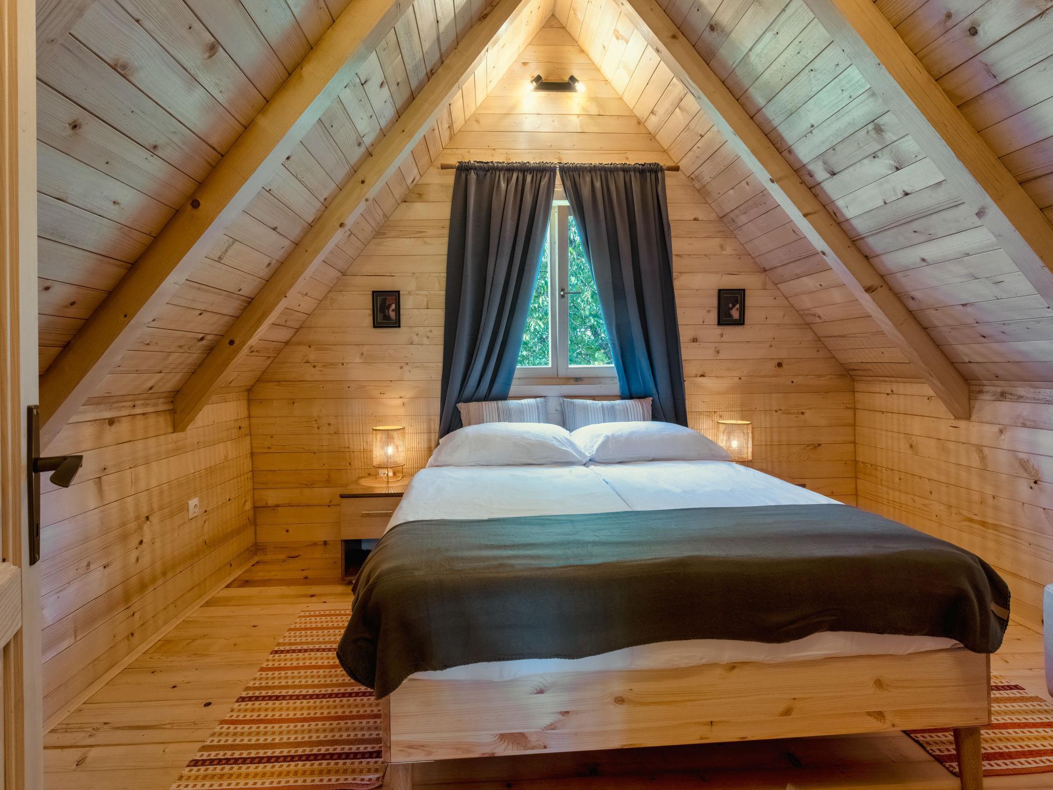 Cosy chalet "Jela", 2 storeys, built in 2024. 3 km from the centre of Karlovac, in a sunny position, 108 km from the sea, 1 km from the river, in the countryside. Private: property 5'000 m2 (fenced) with lawn and trees, orchard. Terrace (16 m2), garden furniture, barbecue. In the house: internet access. Parking (for 2 cars) at the house on the premises. Shop 2 km, supermarket 3 km, restaurant 2 km, bus stop 5 km, railway station 5 km. Tennis 5 km, walking paths from the house 1 km. Well-known lakes can easily be reached: Plitvicka jezera 87 km. The owner does not accept any youth groups. Please note: the owner lives on the same property. Organizing a party is not allowed. .
