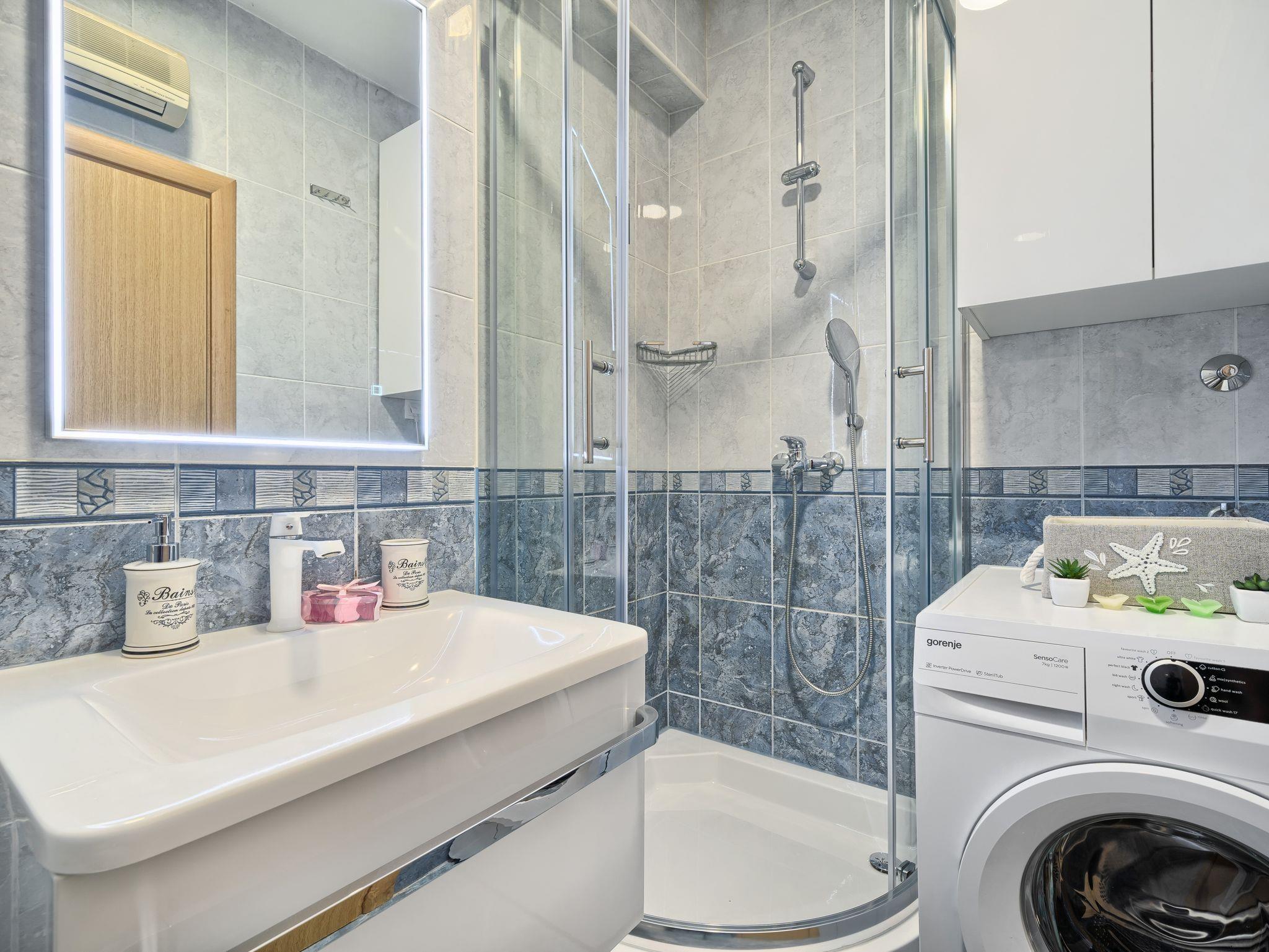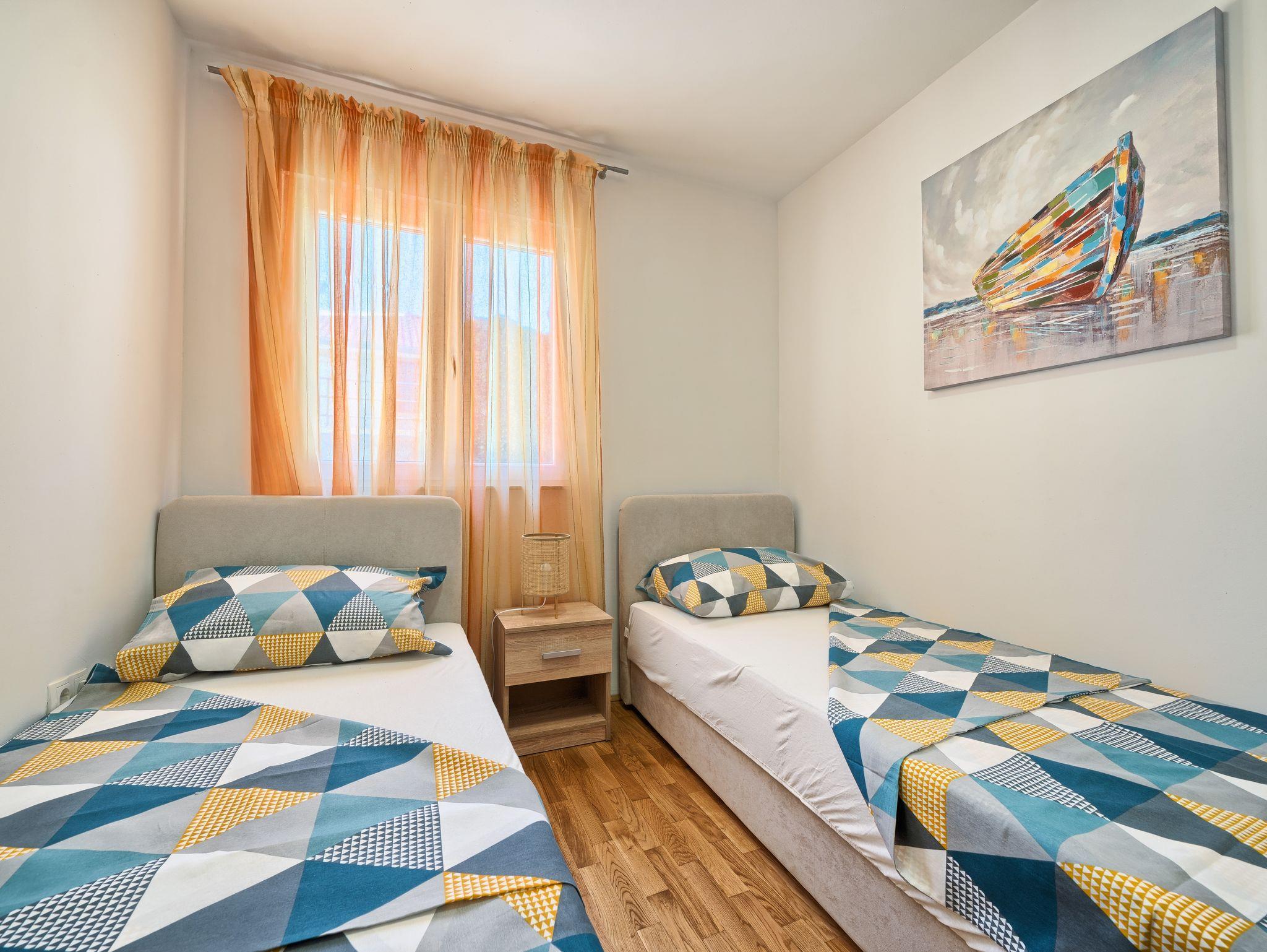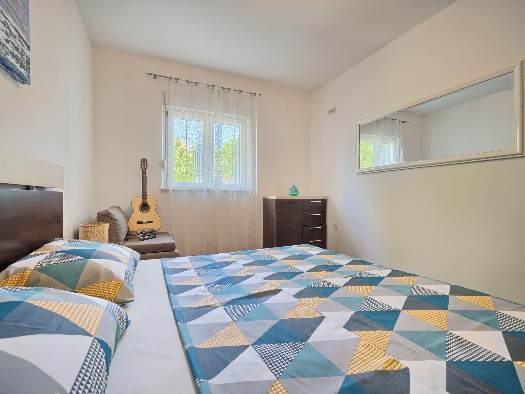 Ferienwohnung bietet Platz für 5 Gäste. Die Betten sind in Schlafzimmern, die es 2 gibt, innerhalb einer Gesamtfläche von 60m2, angeordnet. Die Gäste haben eine eigene Terrasse zur Verfügung, auf der sie in warmen Sommernächten genießen können. Für vollen Genuss und Entspannung gibt es einen privaten Grill für Gäste dieser Unterkunft. Während ihres Aufenthalts können Gäste das gemeinsam zur Nutzung stehende Schwimmbad benutzen. IM PREIS INBEGRIFFEN: Kurtaxe, Endreinigung, Klimatisierung, Pool, Parkplatz, Internet, Kinderbett, Bügeleisen, Bügelbrett, Föhn, tragbarer Grill, 2 Kinderbettchen (im Preis enthalten). Die Verfügbarkeit zusätzlicher Dienstleistungen in Ihrem reservierten Termin und die Preise derselben (falls nicht aufgeführt) müssen im Voraus überprüft werden. Zusätzliche Dienstleistungen die in der Zahlungsaufforderung nicht aufgeführt sind werden direkt beim Vermieter bezahlt, angenommen der Gast nutzt auch diese.