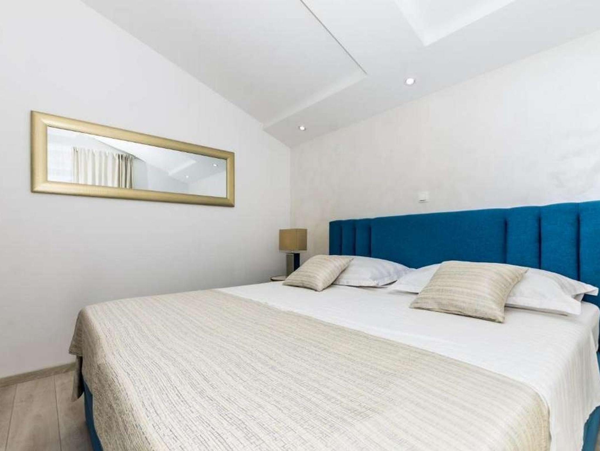Ferienwohnung bietet Platz für 6 Gäste. Die Betten sind in Schlafzimmern, die es 2 gibt, und in Wohnzimmer, innerhalb einer Gesamtfläche von 85m2, angeordnet. Die Gäste haben einen eigenen Balkon zur Verfügung, auf der sie in warmen Sommernächten genießen können. Das Apartment bietet Meerblick. IM PREIS INBEGRIFFEN: Kurtaxe, Endreinigung, Klimatisierung, Parkplatz, Internet, Bügeleisen, Bügelbrett, Föhn. VERBINDLICHE ZUSÄTZLICHE KOSTEN: Aufzahlung für Kurzaufenthalte (prozentualer Zuschlag pro Nächtigungsanzahl: 30% - 1, 20% - 2, 10% - 3). Die Verfügbarkeit zusätzlicher Dienstleistungen in Ihrem reservierten Termin und die Preise derselben (falls nicht aufgeführt) müssen im Voraus überprüft werden. Zusätzliche Dienstleistungen die in der Zahlungsaufforderung nicht aufgeführt sind werden direkt beim Vermieter bezahlt, angenommen der Gast nutzt auch diese. Ermäßigung auf den Grundpreis: Gratistag 14=13 (bei einem Aufenthalt von 14 Tagen oder mehr erhalten Sie einen Gratistag für den Aufenthalt bis 31.12.26).