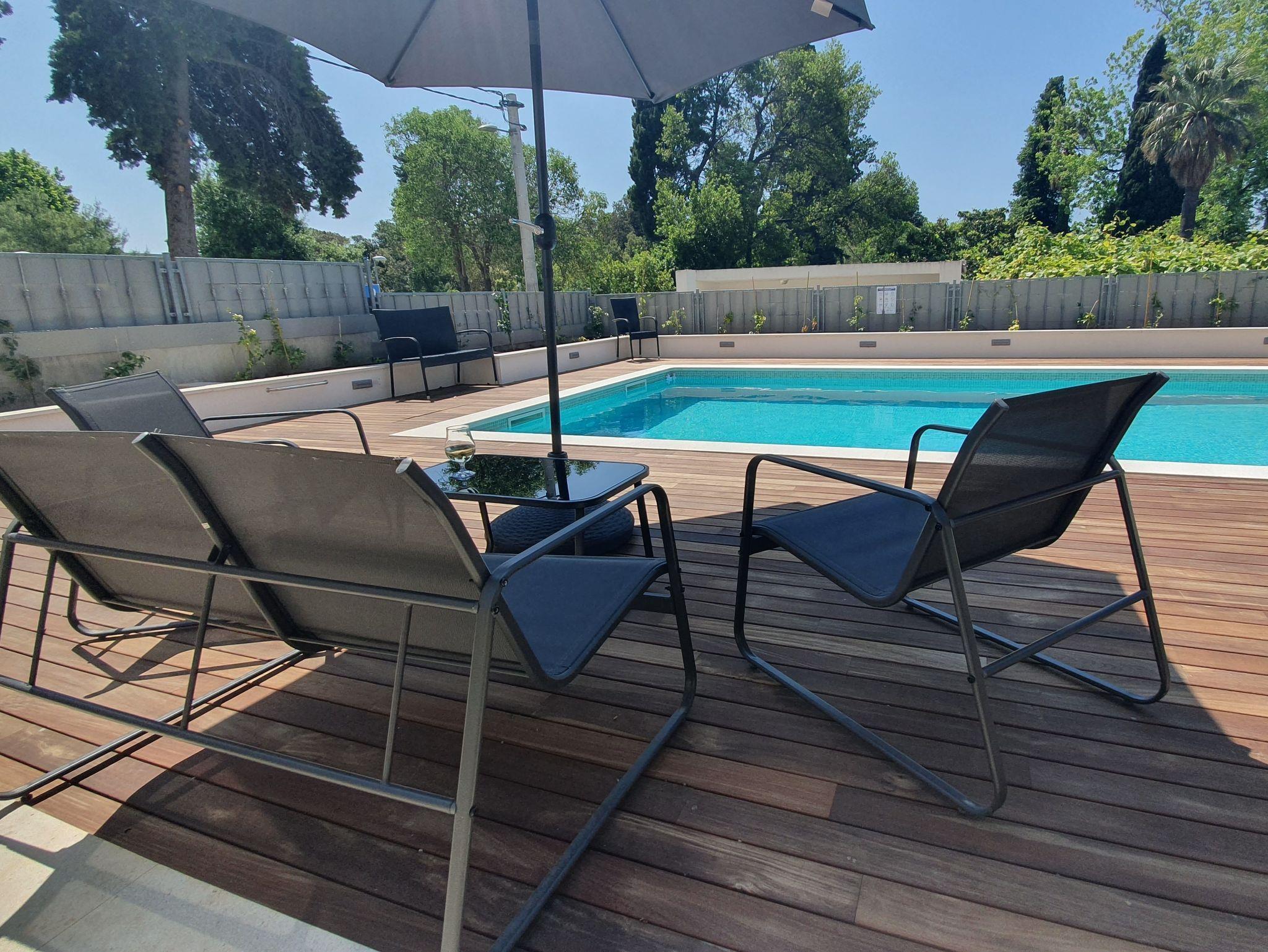 Hof (100m2, Kinderbereich, Sitzbereich), Parkplatz (Anzahl der Parkplätze: 2, Entfernung vom Objekt: im Hof), Parkplatz (Anzahl der Parkplätze: 2, Entfernung vom Objekt: 20 m), Pool: gemeinsam, Dimensionen: 9m x 4.5m x 1.5m, Wassertyp: Süßwasser, Heizung: Ja, WiFi Internet, Föhn, Bügeleisen, Bügelbrett, Tragbarer Grill, Kinderbett