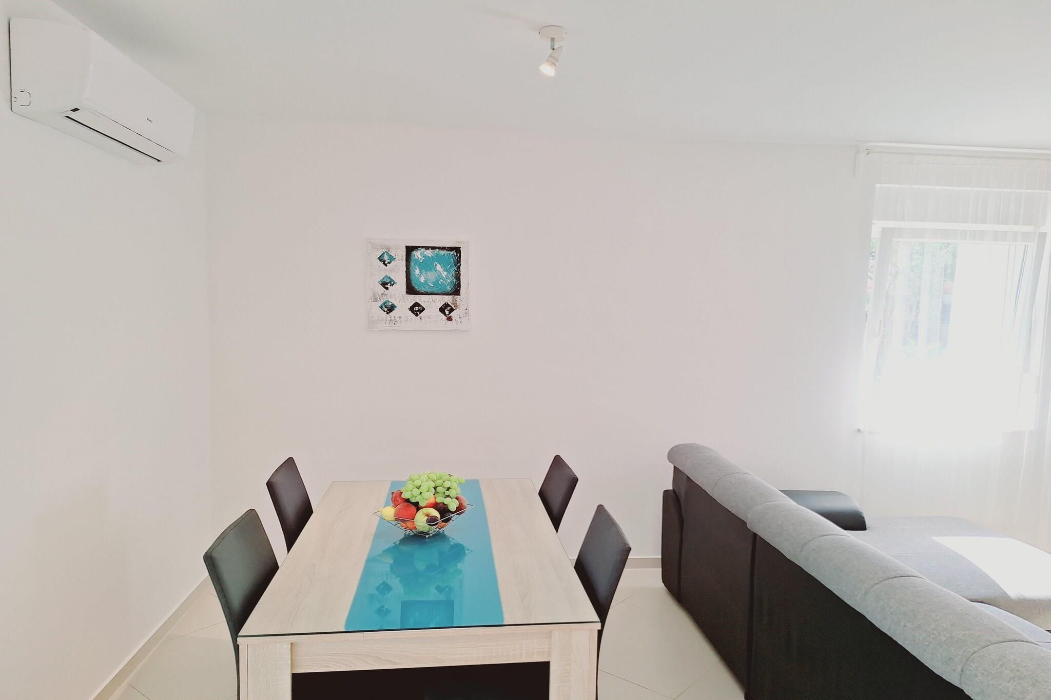 Enelani 1 apartment is located on the ground floor of the family house, oriented south-west. It has one bedroom with large double bed, comfortable living room with large folded sofa bed, fully equipped kitchen with dishwasher, full bathroom with shower and washing machine, a large covered terrace in front, air conditioning, LCD TV and parking space. Enelani 1 apartment is located in Kastel Stafilic, only 200 meters from the nearest beach. The design is modern and space exudes a pleasant interior and exterior. There is a large fenced garden approx. 3.500 square meter with grill and outside dining area where one can enjoy pleasant stay outside. Apartment is surrounded by many Mediterranean plants, trees and flowers. New project that we are working on and will be finished until June 2025. will be the outdoor fitness equipment for workout, table tennis, football table and basketball hoop. Accommodation which gives you privacy and plenty of amazing things to see and activities to do, will surely turn your stay into an experience that you will remember forever! This position is suitable for holiday due to sufficient distance from the city's hustle and bustle, and is also appropriate because of its closeness to all cultural sites and attractions that will make your holiday unforgettable. We are here to provide you a pleasant and nice holiday, and we are available for your every need and any question and suggestion.