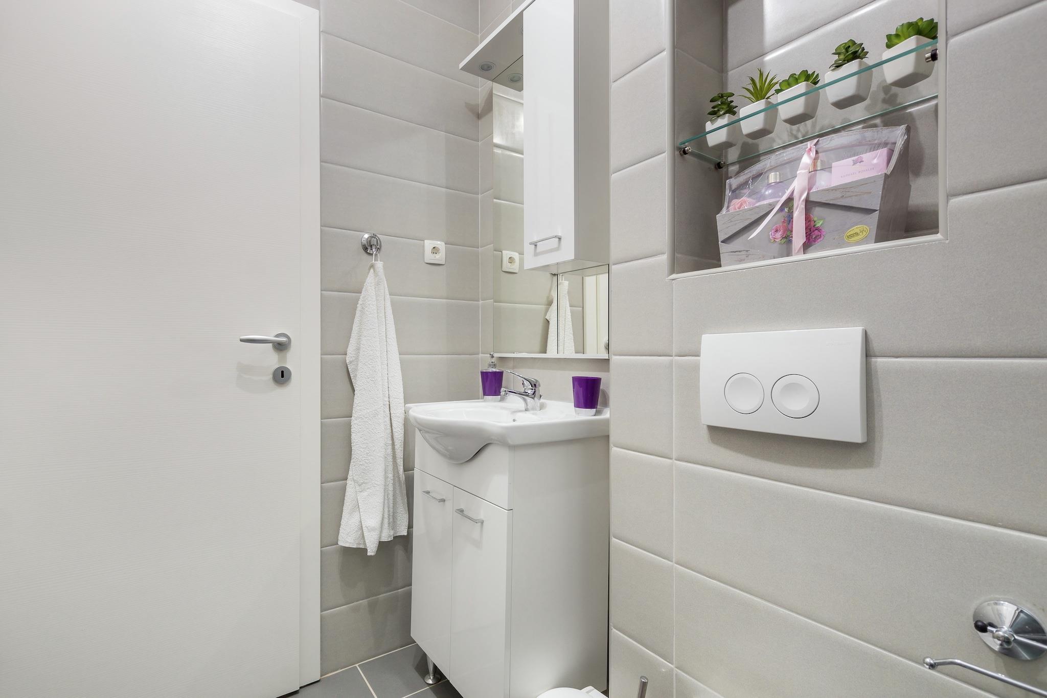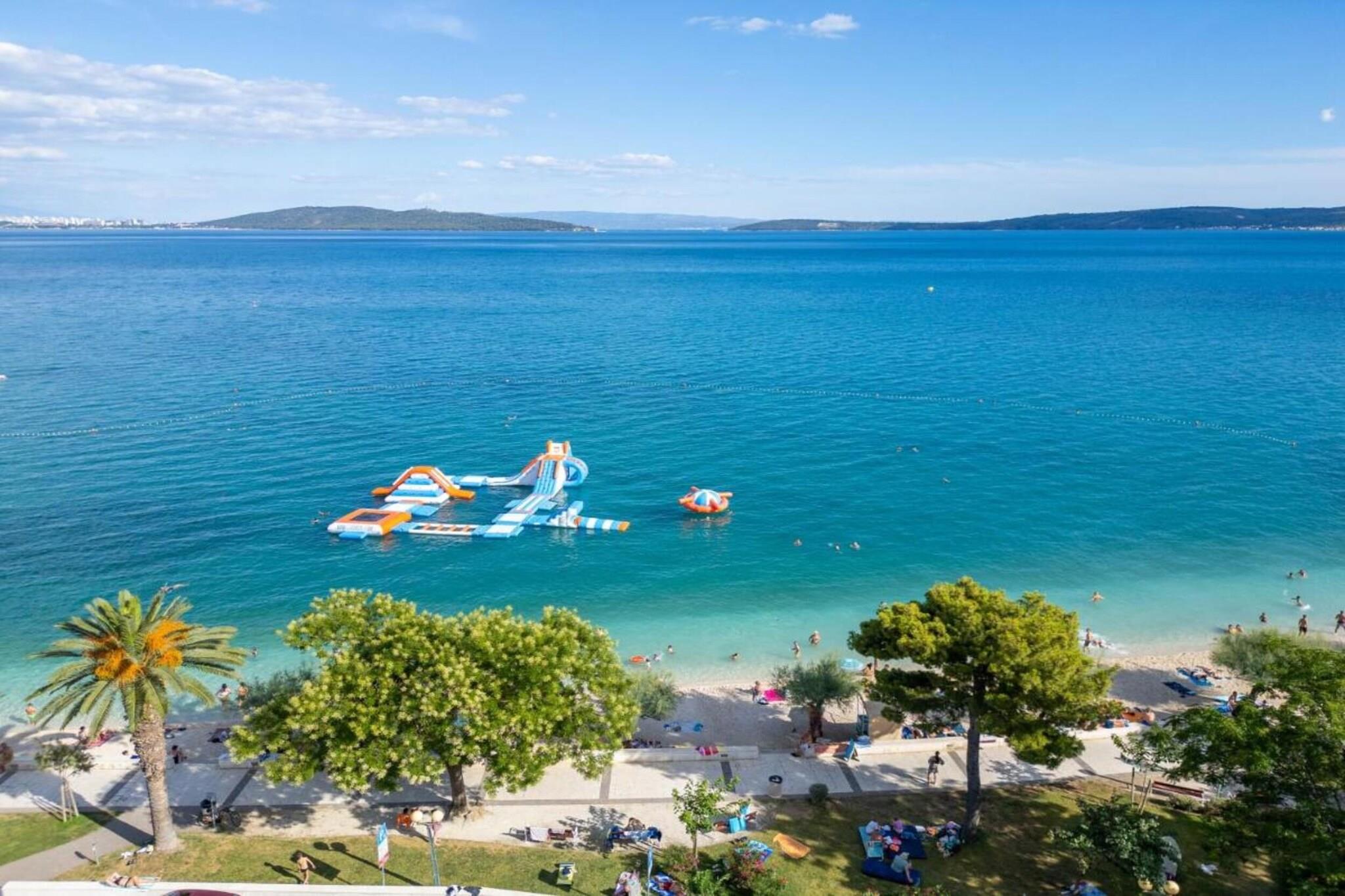 Enjoy breathtaking sea views from the balcony of this charming 1-bedroom apartment in Kaštel Stari, perfect for a family or group of 4. With a serene setting and access to a shared barbecue, it's an ideal spot to unwind after a day of sightseeing or beach fun. Located just 2.7 km from a sandy beach, you’re never far from a refreshing swim or sun-soaked afternoon. Satisfy your cravings at local restaurants 1.5 km away, or stock up on essentials from supermarkets just 700 m away. Explore the beautiful Dalmatian coast with a visit to the historic town of Trogir, only 11 km away. Inside, the apartment is well-furnished and air-conditioned, featuring a bright living and dining area, a fully equipped kitchen, and a private balcony to soak in the views. With on-site parking, and excellent connections, the train station is 200 m away and Split Airport just 6.5 km, this is a convenient and relaxing base for your Croatian holiday.