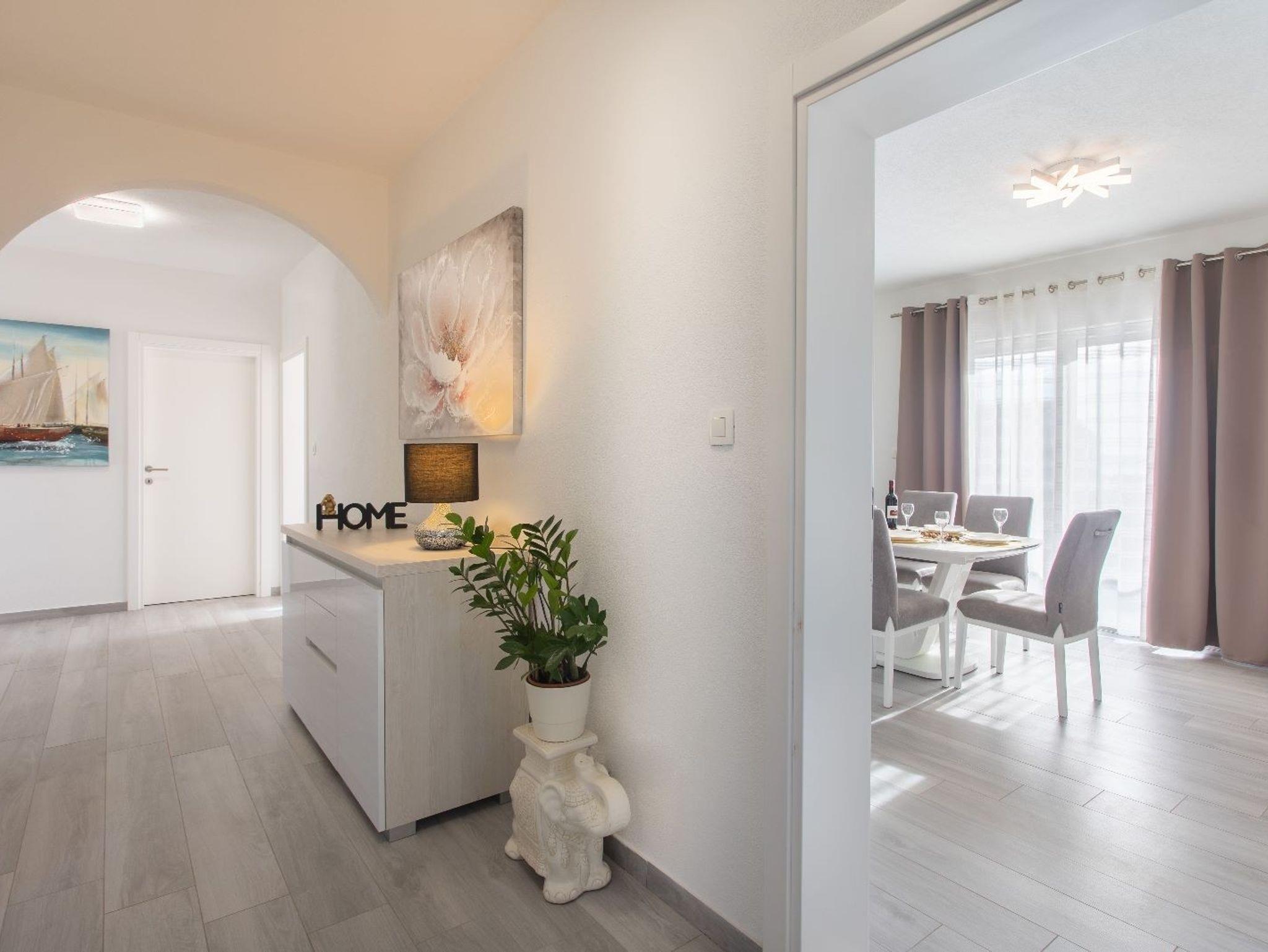 Ferienwohnung bietet Platz für 6 Gäste. Die Betten sind in Schlafzimmern, die es 3 gibt, innerhalb einer Gesamtfläche von 112m2, angeordnet. Die Gäste haben eine eigene Terrasse zur Verfügung, auf der sie in warmen Sommernächten genießen können. Das Apartment bietet Meerblick. Für vollen Genuss und Entspannung gibt es einen privaten Grill für Gäste dieser Unterkunft. Während ihres Aufenthalts können sich Gäste im privaten Schwimmbad entspannen. IM PREIS INBEGRIFFEN: Kurtaxe, Endreinigung, Klimatisierung, Pool, Parkplatz, Internet, Kinderbett, Bügeleisen, Bügelbrett, Föhn. Die Verfügbarkeit zusätzlicher Dienstleistungen in Ihrem reservierten Termin und die Preise derselben (falls nicht aufgeführt) müssen im Voraus überprüft werden. Zusätzliche Dienstleistungen die in der Zahlungsaufforderung nicht aufgeführt sind werden direkt beim Vermieter bezahlt, angenommen der Gast nutzt auch diese.