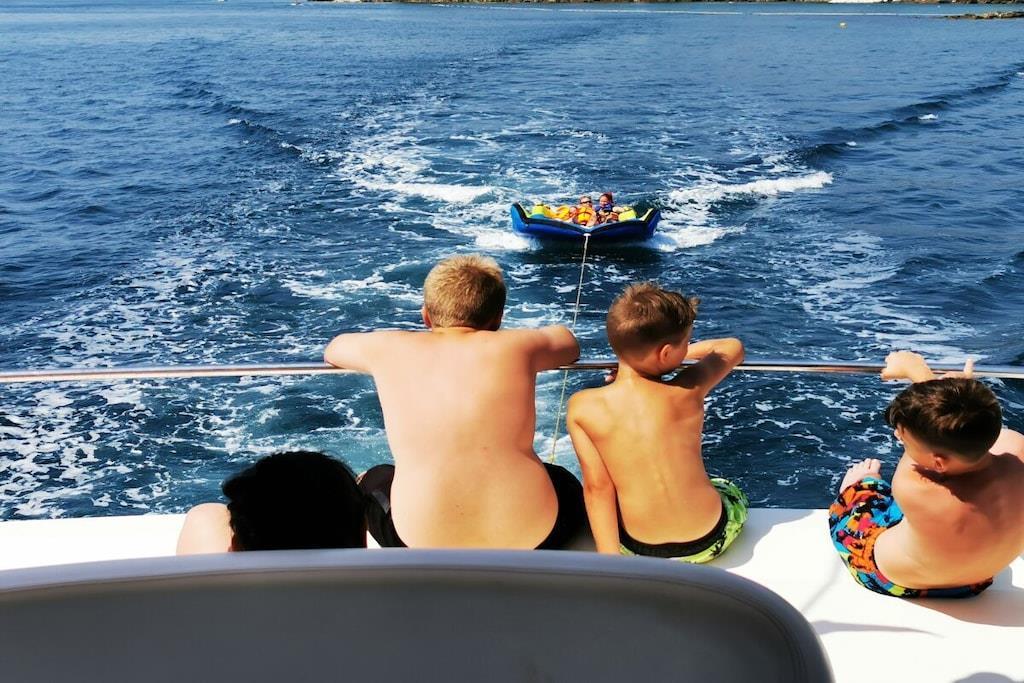 Ground floor: (Kitchen(stove, hob, cooker, oven, dishwasher, fridge, heating, air conditioning), Living/diningroom(Sofa, TV, dining table, heating, air conditioning), bedroom(Bed Linen, Wardrobe, double bed, double bed, TV, heating, air conditioning), bathroom(Mirror, toilet, shower, washbasin, heating), guest toilet(Mirror, toilet, washbasin, heating)) On the 1st floor: (bedroom(Bed Linen, Wardrobe, double bed, TV, heating, air conditioning), bedroom(Bed Linen, Wardrobe, double bed, TV, heating, air conditioning), bathroom(Mirror, toilet, shower, washbasin, heating), bathroom(Mirror, toilet, shower, washbasin, heating)) Hot Water, Vacuum Cleaner, carport, Internet access, Internet access, washing machine, balcony(garden furniture), balcony(garden furniture), balcony(garden furniture), heating, terrace(Sun Umbrella, garden furniture, sun loungers), parking, stair gate, ironing board, iron, drying cabinet, Alarm