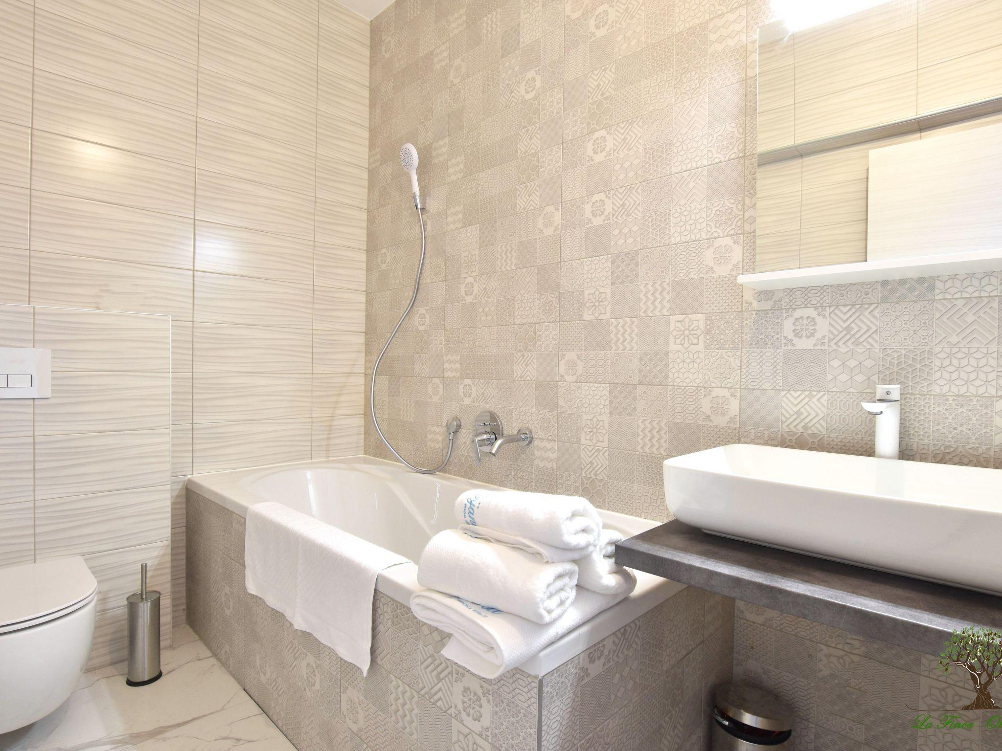The interior of the house leaves nothing to be desired. Four spacious rooms, each with its own bathroom, offer sufficient privacy and comfort. A highlight is the living room with an additional shower, a SMART TV, a Sony WIFI party speaker for background music, two rooms with SMART TV, a room with a game computer and PlayStation 4 and a room with a laptop. The modern Copatlife kitchen is fully equipped and includes a wine cooler, fridge, ice machine, freezer and dishwasher. The whole house has air conditioning and all rooms have underfloor heating.