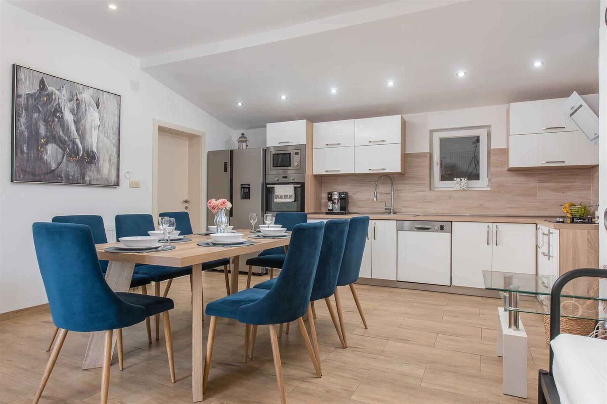 Surrounded by open landscapes and quiet village roads, Villa Didovina offers a peaceful escape in the heart of Kladnjice, just a comfortable drive from the energy of Split. It’s a setting built for travellers who appreciate space, privacy, and the slower rhythm of rural Croatia, without giving up modern comforts. Set on a fully fenced 900 m² plot, the villa accommodates up to 8 guests across the spacious interiors. The layout is spread across two levels: the basement level hosts a fully equipped kitchen, a shared living-dining area with seating, a dining table and a single bed, a master bedroom with a large double bed, and an ensuite bathroom, plus another double bedroom with a TV and a shared full bathroom. On the upper floor, a bright open-concept living and dining area connects to a second kitchen, along with a double bedroom and a bathroom. Outdoor living is where the villa truly shines. A heated private pool, five sun loungers, shaded seating, and a wood-fired barbecue with outdoor dining area create a relaxed setting for full days outside. Children have their own playground, trampoline, table tennis and billiards, while adults can unwind in the garden or on the patio. The villa is fully air-conditioned, with Wi-Fi, washer, dryer, baby equipment and pet-friendly options added for convenience. Beyond the gates, Kladnjice offers countryside walks, cycling routes and family attractions like the Ranch Horse Family nearby, while beaches and Split remain easy day trips. This villa is best suited for travellers seeking a quiet rural base with full privacy, family-friendly facilities, and the flexibility to enjoy both countryside and coast at their own pace - making it a practical, comfortable choice for longer, slower holidays.