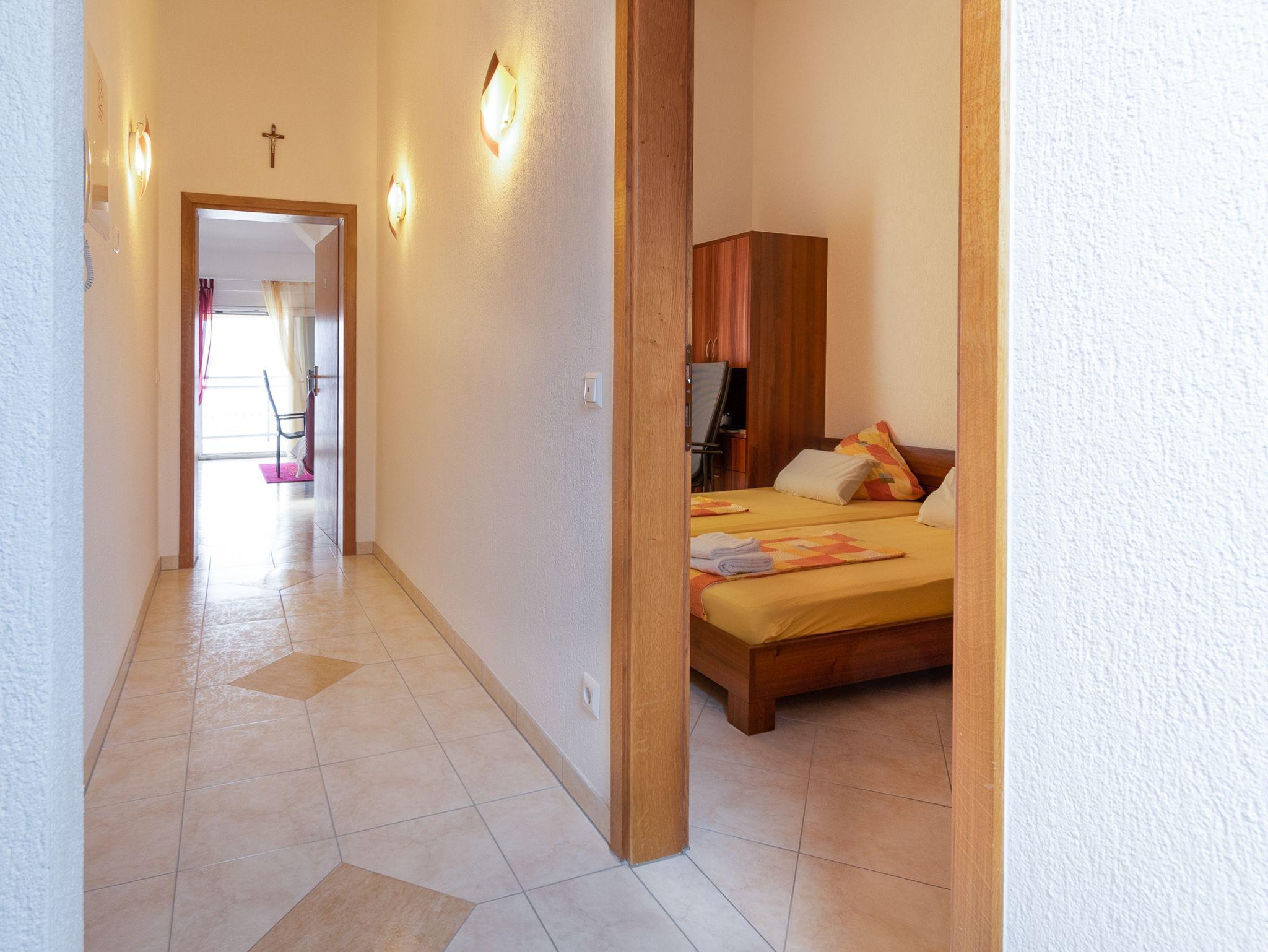 Ferienwohnung bietet Platz für 4 Gäste. Die Betten sind in Schlafzimmern, die es 2 gibt, innerhalb einer Gesamtfläche von 54m2, angeordnet. Die Gäste haben eine eigene Terrasse zur Verfügung, auf der sie in warmen Sommernächten genießen können. Das Apartment bietet Meerblick. Es ist erlaubt, Speisen auf dem Gemeinschafts-Grill vorzubereiten. Räume der gebuchten Unterkunftseinheit werden nicht in eine Ganze verbunden. IM PREIS INBEGRIFFEN: Kurtaxe, Endreinigung, Klimatisierung, Zentralheizung, Parkplatz, Internet, Bügeleisen, Bügelbrett, Föhn, tragbarer Grill, 1 Bett für Kinder (im Preis enthalten). UNVERBINDLICHE ZUSÄTZLICHE KOSTEN: Wäschewaschen (5,00 € Waschen). Die Verfügbarkeit zusätzlicher Dienstleistungen in Ihrem reservierten Termin und die Preise derselben (falls nicht aufgeführt) müssen im Voraus überprüft werden. Zusätzliche Dienstleistungen die in der Zahlungsaufforderung nicht aufgeführt sind werden direkt beim Vermieter bezahlt, angenommen der Gast nutzt auch diese. Ermäßigung auf den Grundpreis: Gratistag 28=25 (bei einem Aufenthalt von 28 oder mehr Tagen erhalten Sie 3 kostenlose Tage für den Aufenthalt bis 31.12.26).