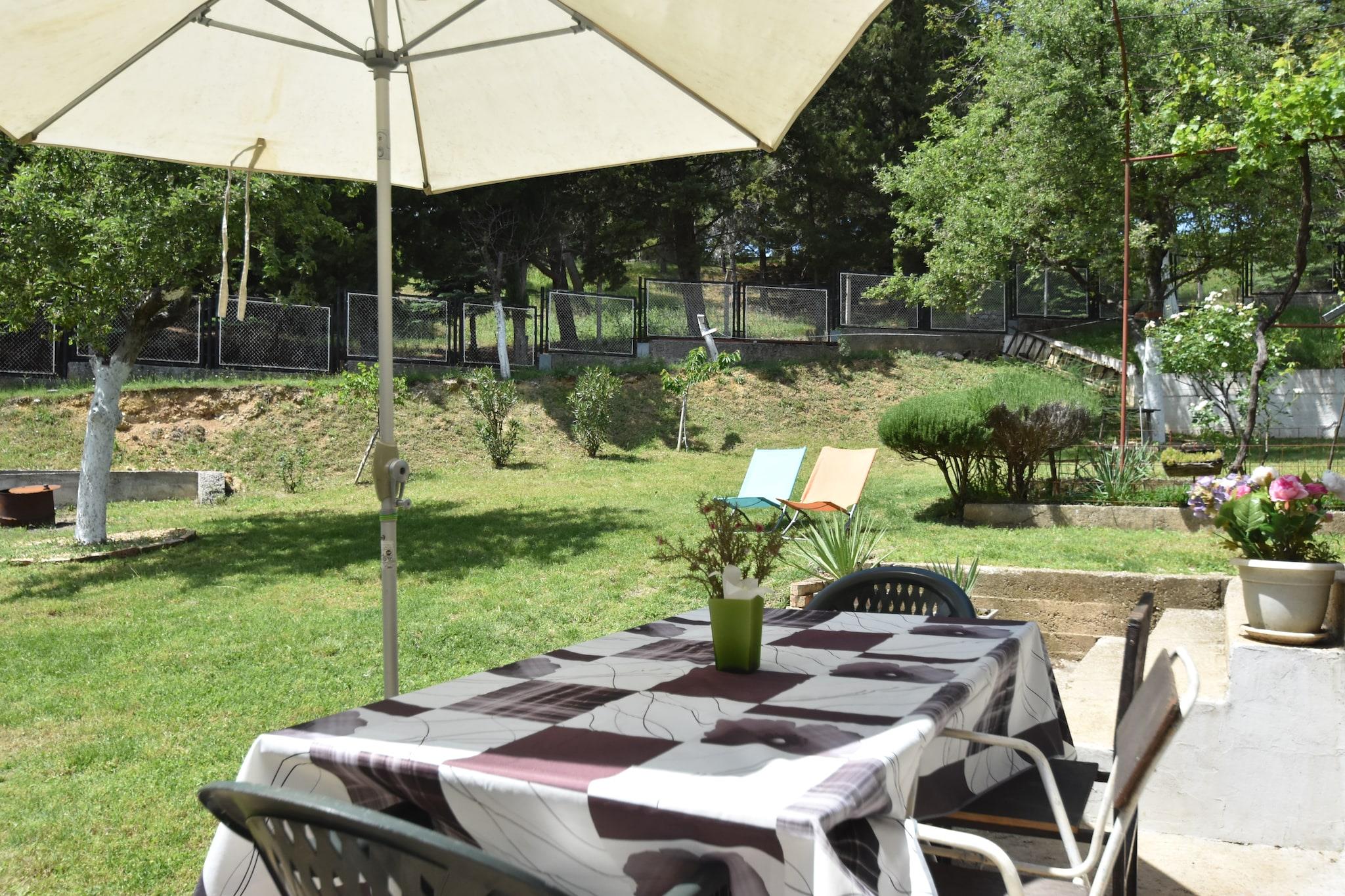 On the 1st floor: (Living room(TV(flatscreen, satellite, international television channels), seating area, DVD player), Kitchen(dining table, toaster, cooker(4 ring stoves, gas, electric), coffee machine, oven, microwave, fridge-freezer, balcony, air conditioning), bedroom(double bed(180 x 200 cm), balcony), bedroom(2x single bed(90 x 200 cm)), bedroom(2x single bed(90 x 200 cm)), bathroom(shower, washbasin, toilet), heating, garden furniture) stove, washing machine, balcony, garden(shared with the owner , fenced, 1000 m2), garden furniture, BBQ, parking, parasol, party games