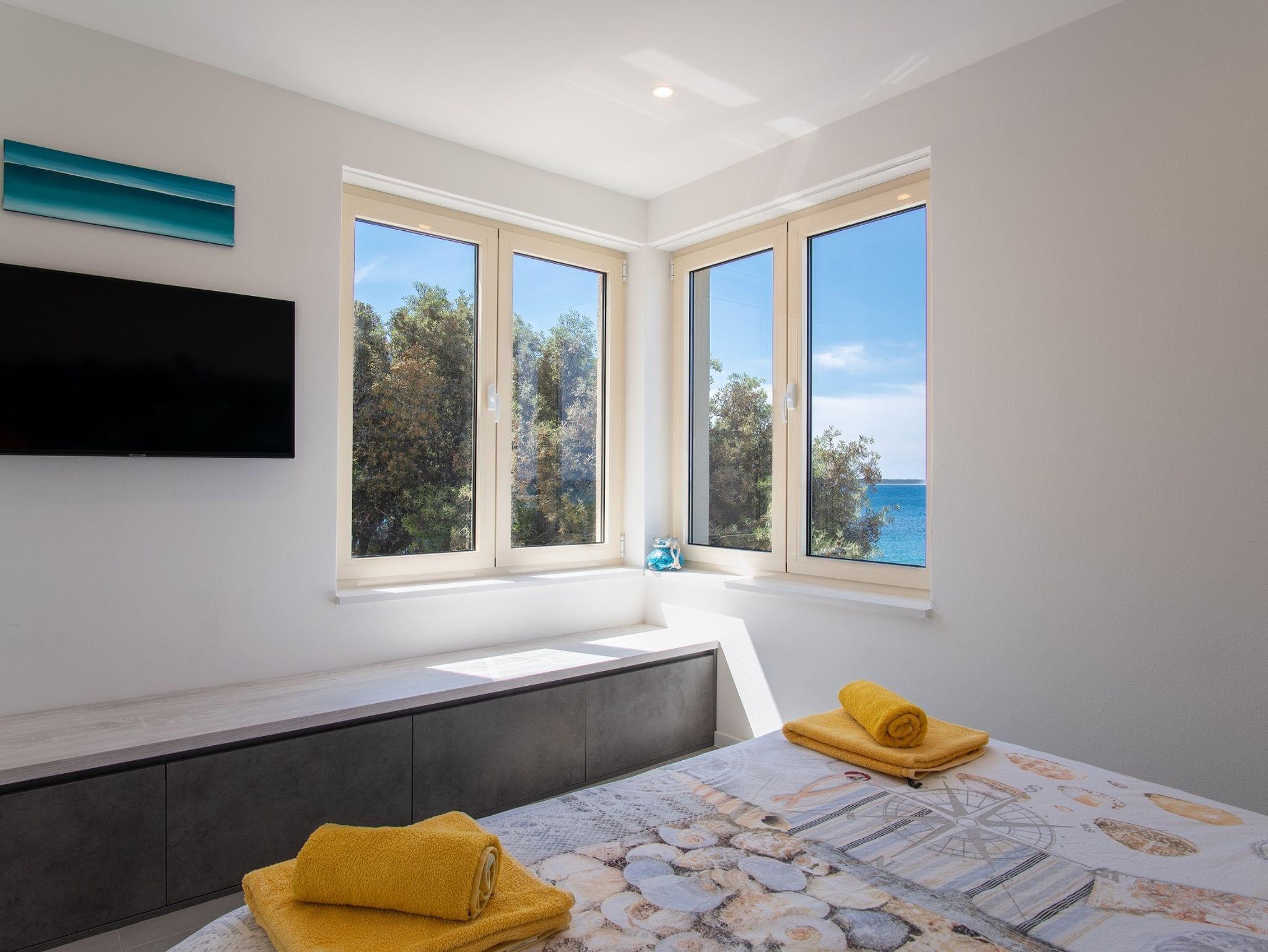 Haus bietet Platz für 7 Gäste. Die Betten sind in Schlafzimmern, die es 3 gibt, und in Wohnzimmer, innerhalb einer Gesamtfläche von 62m2, angeordnet. Die Gäste haben eine eigene Terrasse zur Verfügung, auf der sie in warmen Sommernächten genießen können. Das Haus bietet Meerblick. Für vollen Genuss und Entspannung gibt es einen privaten Grill für Gäste dieser Unterkunft. In der Unterkunftseinheit besteht die Möglichkeit des Mitbringens von Haustieren, und die Dienstleistung ist im Preis der Unterkunft enthalten. IM PREIS INBEGRIFFEN: Kurtaxe, Endreinigung, Klimatisierung, Zentralheizung, Parkplatz, Internet, Haustiere, Kinderbett, Bügeleisen, Föhn. UNVERBINDLICHE ZUSÄTZLICHE KOSTEN: Boot (200,00 € pro Nacht), Bootsanlegeplatz (50,00 € pro Nacht). Die Verfügbarkeit zusätzlicher Dienstleistungen in Ihrem reservierten Termin und die Preise derselben (falls nicht aufgeführt) müssen im Voraus überprüft werden. Zusätzliche Dienstleistungen die in der Zahlungsaufforderung nicht aufgeführt sind werden direkt beim Vermieter bezahlt, angenommen der Gast nutzt auch diese. Ermäßigung auf den Grundpreis: Gratistag 14=13 (bei einem Aufenthalt von 14 Tagen oder mehr erhalten Sie einen Gratistag für den Aufenthalt bis 31.12.25).