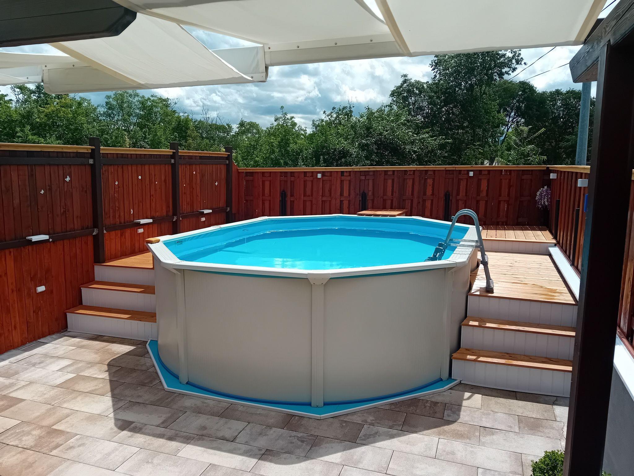 Umgebung des Objekts (Eingerichtet), Hof (100m2, Sitzbereich), Parkplatz (Anzahl der Parkplätze: 1, Entfernung vom Objekt: im Hof), Pool: privat, Dimensionen: 5m x 3.6m x 1.2m, Wassertyp: Süßwasser, WiFi Internet, Föhn, Bügeleisen, Liegestühle