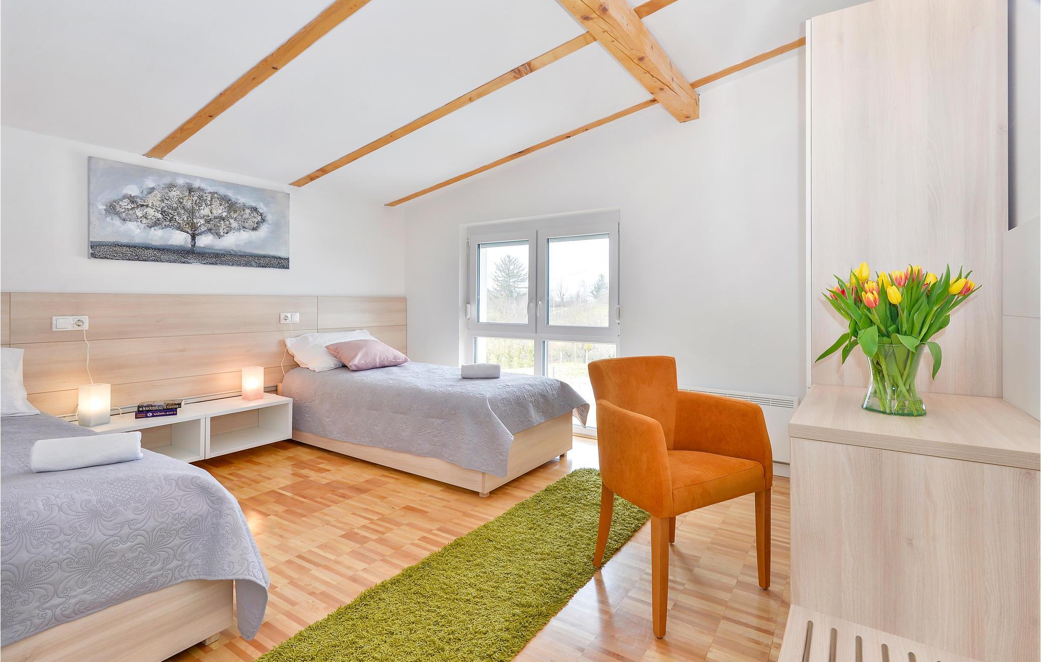 Dieses schöne, moderne Anwesen befindet sich in Podravina unweit der Stadt Durdevac. Es besteht aus vier Häusern, wobei jedes einzigartig ist und für eine verschiedene Anzahl von Feriengästen geeignet ist. Zahlreiche Glasflächen bieten einen Blick auf die wunderschöne Landschaft. Genießen Sie den Kamin im Wohnzimmer oder vergnügen Sie sich bei Gesellschaftsspielen. Im Erdgeschoss gibt es eine kleine Ecke für Kinderanimation. Im Badezimmer erwartet sie Qualititätskosmetik L'Occitene en Provence.