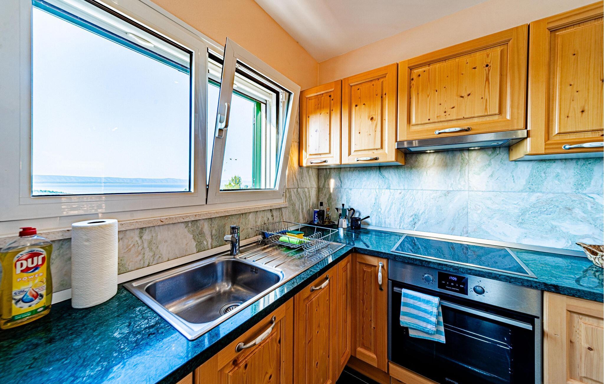Genießen Sie einen wunderbaren Aufenthalt in diesem idyllisch gelegenen Ferienhaus mit Pool und Meerblick.
