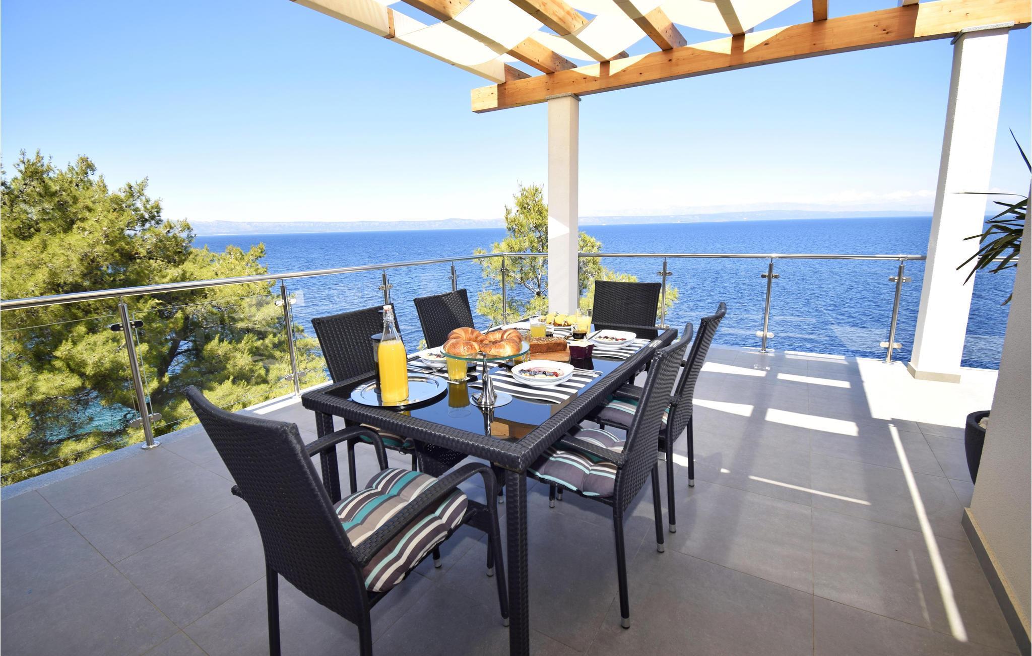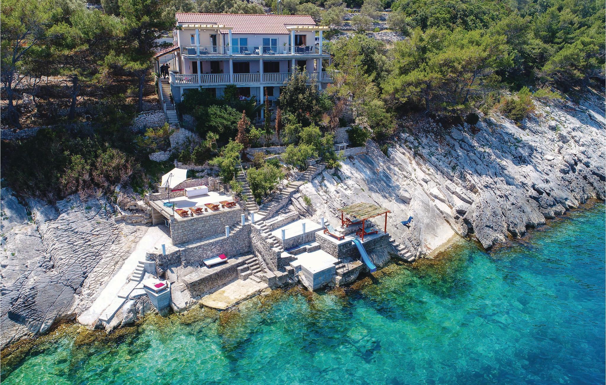 In den geschmackvoll eingerichteten Innenräumen dominieren die gut ausgestattete Küche mit Wohnbereich und Smart-TV sowie die großzügige Terrasse mit ansprechenden Gartenmöbeln, auf der Sie den fantastischen Blick auf das Meer in vorderster Front genießen können. Nur wenige Stufen trennen Sie von Sonnendeck und dem Meer. Erholen Sie sich in grüner Umgebung und unter dem Schatten der Pinienbäume, an einem der schönsten Plätze auf der Insel Korcula.