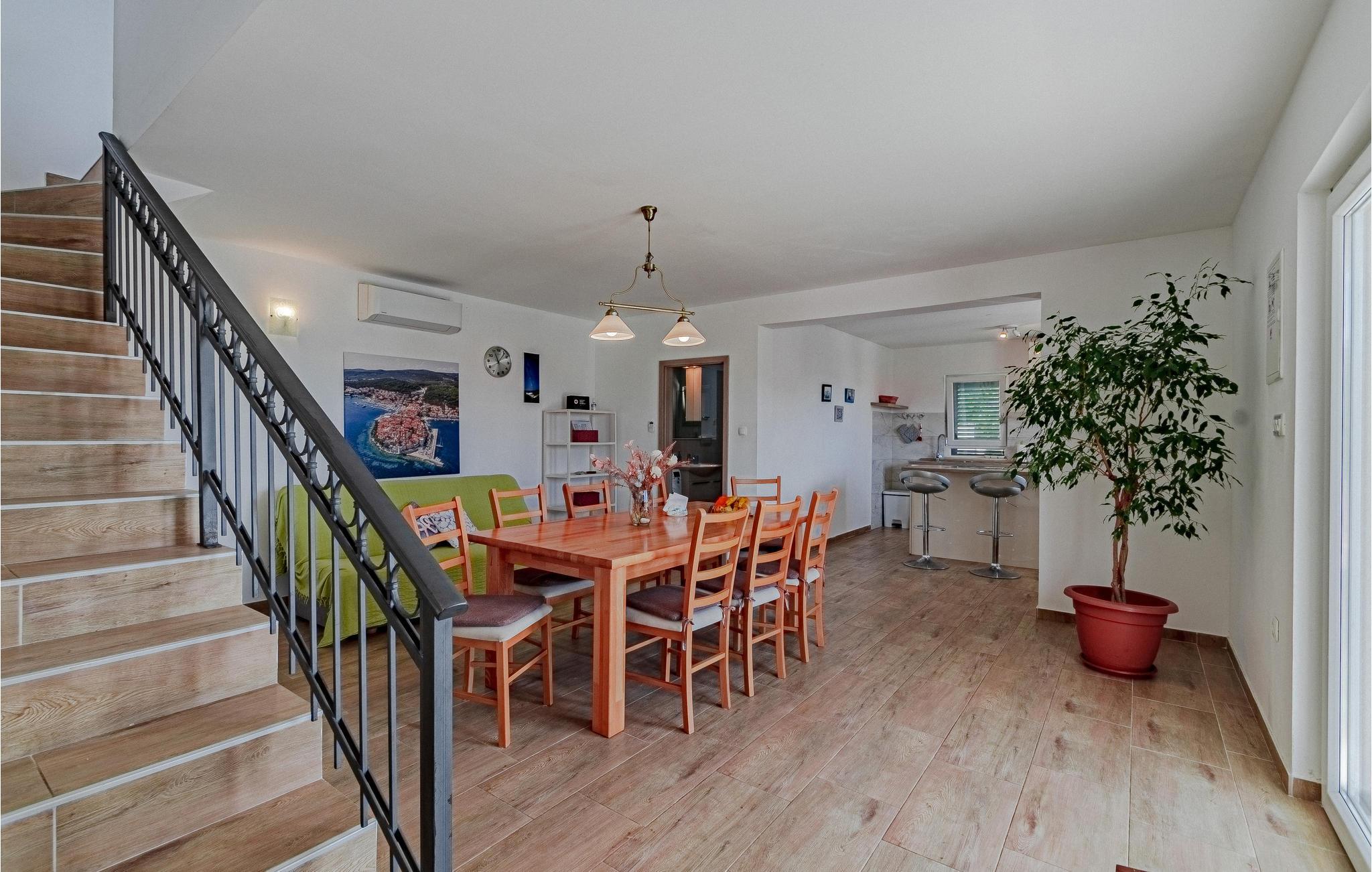 Nur wenige Schritte vom Meer und schönen Kiesstrand entfernt befindet sich dieses wunderbare Ferienhaus mit Pool. Moderne Architektur und elegante Möbel bieten Familien und Freunden viel Komfort für einen unvergesslichen Mittelmeerurlaub. Im Erdgeschoss erwartet Sie eine geräumige Küche mit Ausgang zum Poolbereich mit Sonnenterrasse sowie einer überdachten Terrasse mit Grillplatz, auf dem köstliche Mahlzeiten zubereitet werden können. Im ersten Stock sind ein Wohnzimmer mit Ausgang zur Terrasse vom dem sich eine wunderbare Aussicht auf das Meer bietet. Des Weiteren sind im Obergeschoss noch drei Schlafzimmer und zwei davon haben eigene Balkone. Besuchen Sie die Stadt Vela Luka und unternehmen eine Bootsfahrt zur Insel Proizd mit einem der schönsten Strände an der Adriaküste.