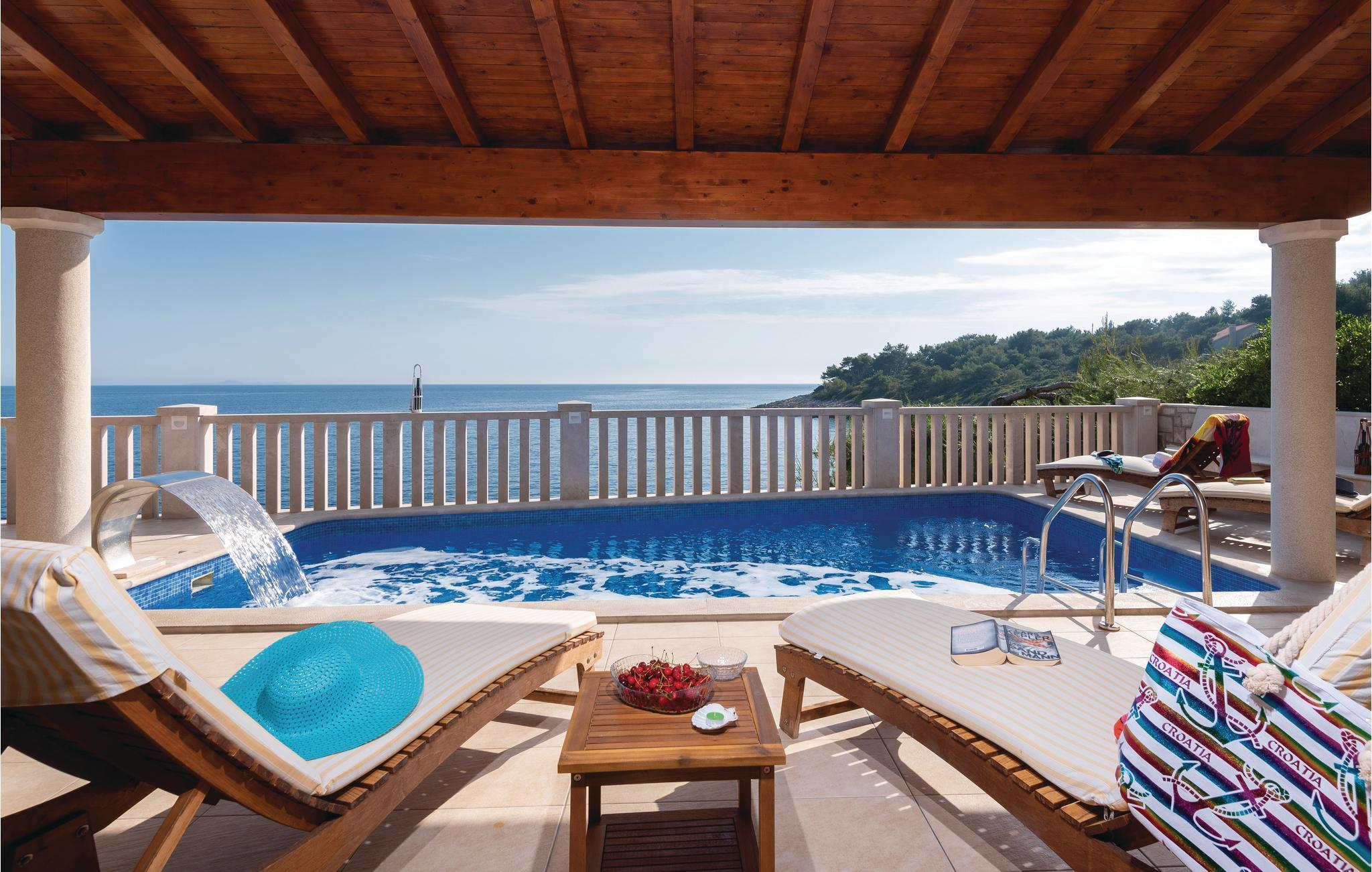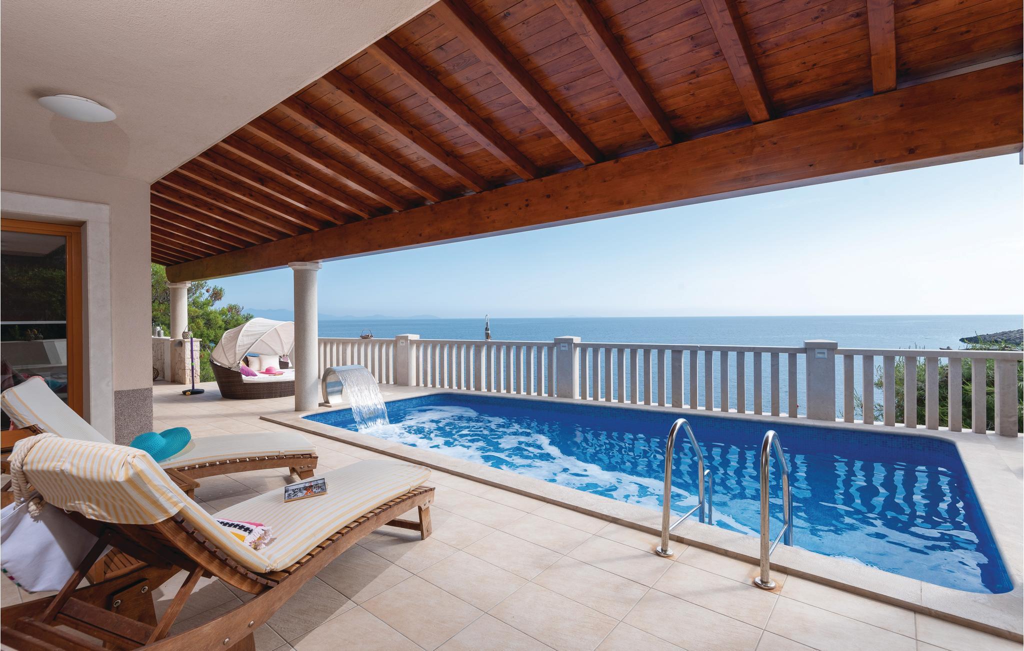 Die Kombination aus Luxus, Komfort und Ausstattung von höchster Qualität sind nur einige Merkmale, die dieses Ferienhaus als eine gute Wahl auszeichnen. Es liegt direkt am Meer, so dass Sie auch mit einer kleinen Yacht oder mit einem Boot hierherkommen können, unterhalb des Hauses gibt es dafür einen Anlegeplatz. Ein paar Treppen führen vom Meer zur schönen steinernen Terrasse mit Sonnenschirmen und Liegestühlen, von denen aus sich ein Panoramablick über eines der schönsten Archipels der Adria erstreckt. Weitere Treppen leiten Sie zur Terrasse mit Salzwasserpool, wo Sie wahrscheinlich die meiste Zeit verbringen werden, um der Sommerhitze zu entfliehen. Das Spielzimmer mit einem Billardtisch, Tischfußball und zwei Computern mit Internet-Anschluss ist gleich in der Verlängerung dieser Terrasse. Daneben befindet sich ein Zimmer mit Whirlpool, wo Sie entspannen und einfach die schöne Aussicht auf das Meer genießen können. Der Raum neben dem Spielzimmer eignet sich für Liebhaber der aktiven Erholung, weil es hier eine finnische Sauna und Fitnessgeräte gibt. Von jedem Zimmer haben Sie eine schöne Aussicht auf das Meer. Innentreppen führen in den 1. Stock, wo sich eine geräumige Küche, Esszimmer und Wohnzimmer befinden, mit direktem Ausgang auf die überdachte Terrasse mit Tisch und Kamin-Grill. Hier können Sie den Abend genießen, während Sie am Lieblingsgetränk nippen und sich von den Ereignissen des Tages erzählen. Auf der gleichen Etage befinden sich zwei Schlafzimmer mit separaten Bädern. Im 2. Stock sind noch 3 luxuriöse Schlafzimmer, jedes mit eigenem Bad und Terrasse. Genau das Richtige für den erholsamen Urlaub. Genießen Sie es!