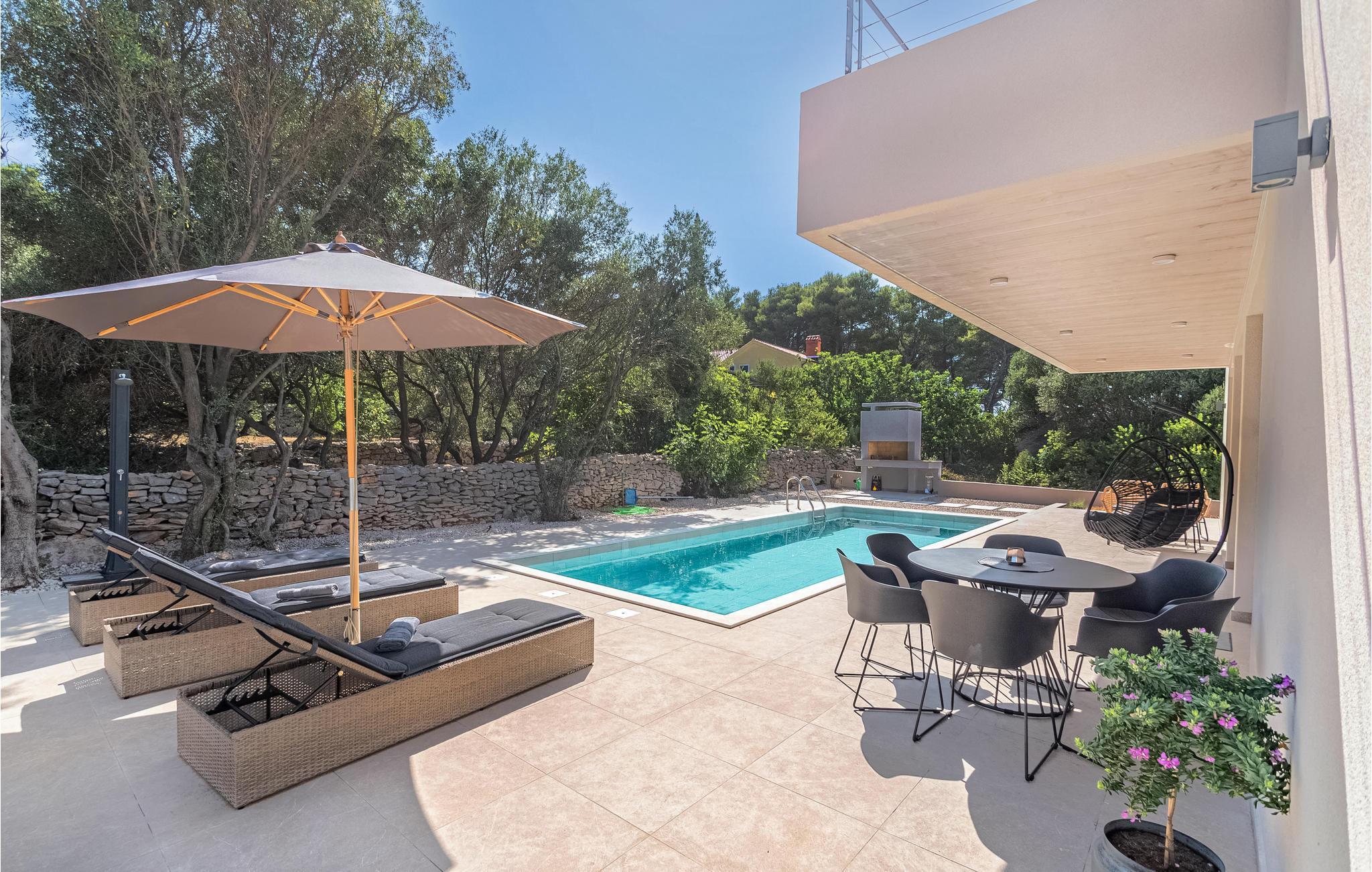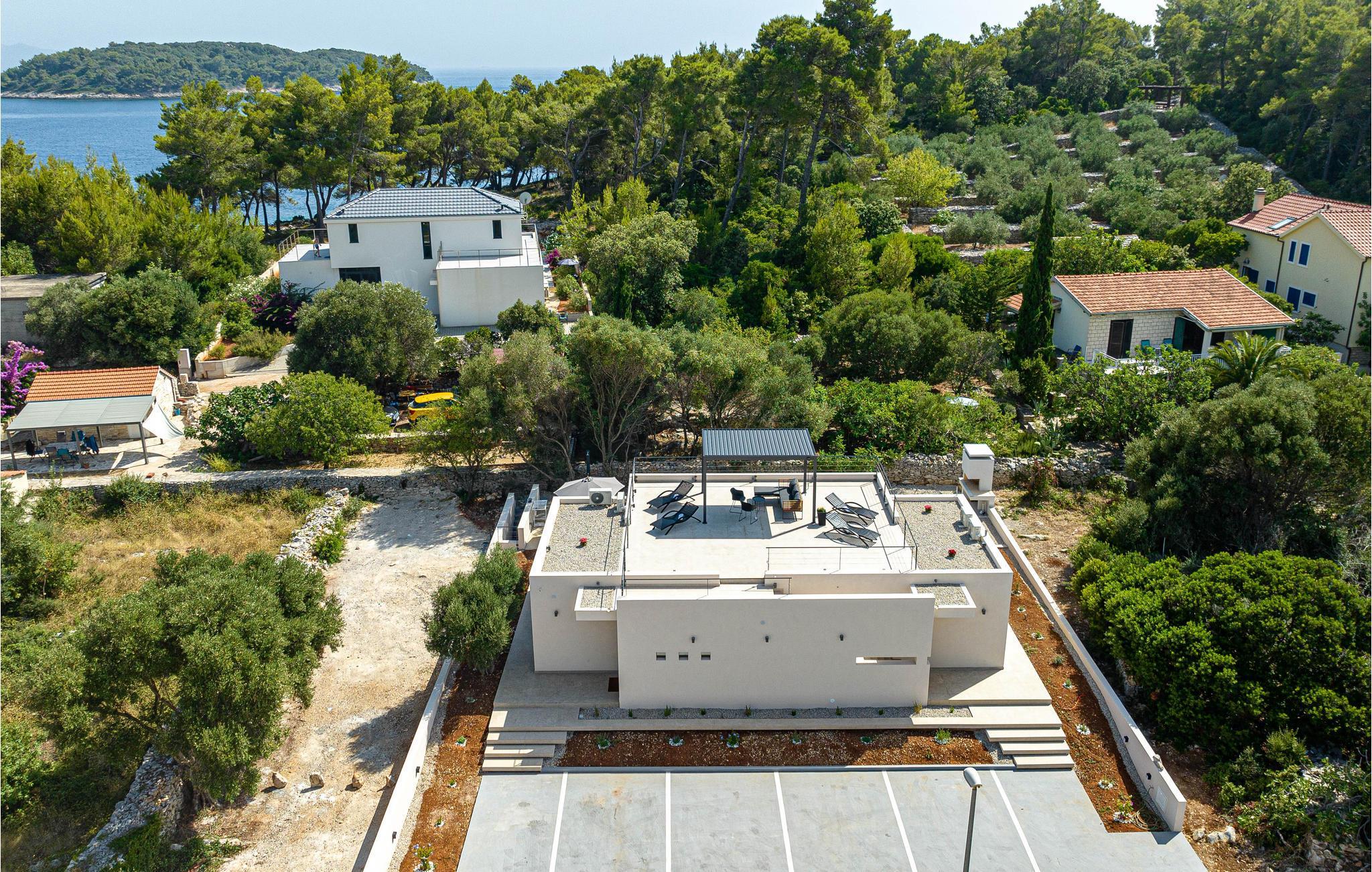 Unweit des Kiesstrandes von Prizba empfängt Sie diese wunderschöne und moderne Villa auf der Anhöhe einer kleinen Halbinsel. Die komfortable Ferienunterkunft ist die ideale Unterkunft für Sie und Ihre Familie, die in Ihrem Urlaub hochwertige Möbel und dekorative Räume bevorzugen. Das Innere des Hauses ist in hellen Farben gestaltet, sodass eine herrliche Wohlfühlatmosphäre geschaffen wird, in der Sie gerne kochen, essen, spielen und entspannen.