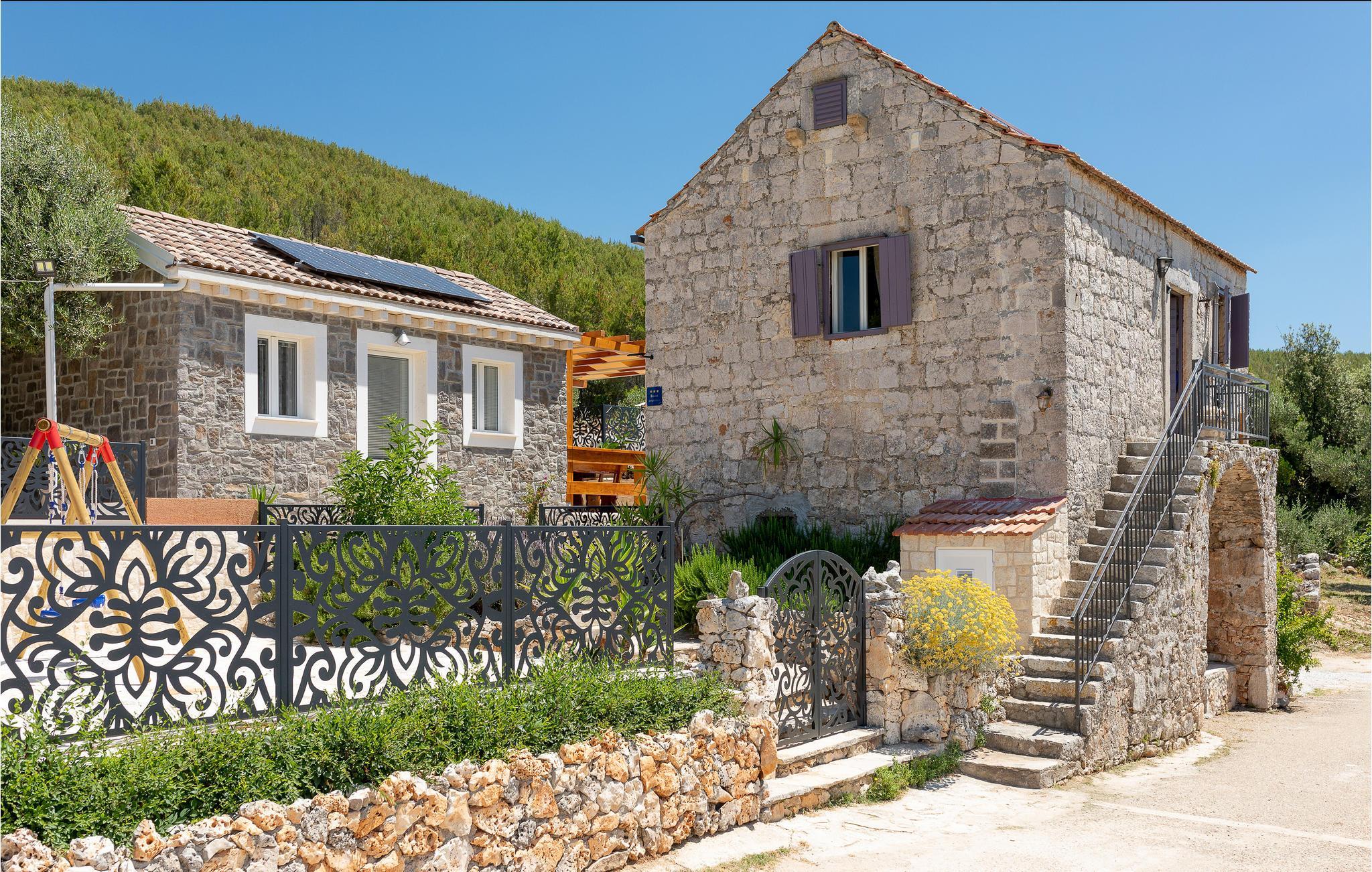 Diese zwei Steinhäuser liegen auf einem Anwesen mit Privatsphäre und herrlichem Ausblick auf die umliegenden Weinberge und teilweise auf das Meer. Die Lage ist optimal für einen entspannten Urlaub mit Ihrer Familie oder Freunden und trotzdem nah an Veranstaltungen und sonstigen Freizeitmöglichkeiten. In dem einen Steinhaus, das zugleich ein Kulturdenkmal aus dem 17. Jahrhundert ist, finden Sie eine Küche und Wohnzimmer im Erdgeschoss, sowie drei Schlafzimmer in der Galerie unter dem Dach.