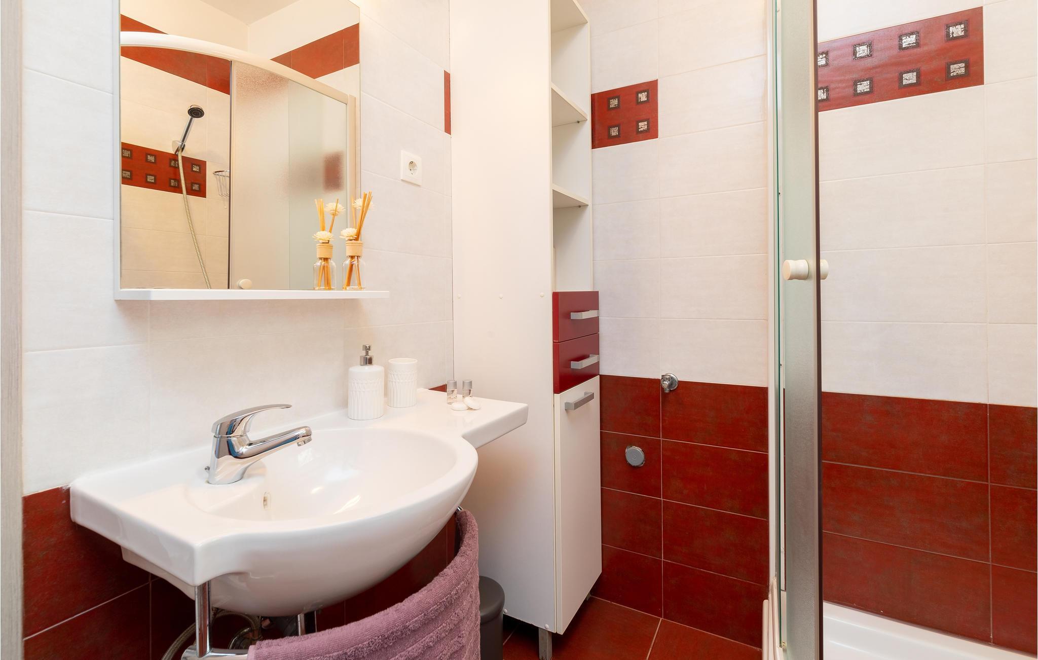 Badezimmer (nr. 2) - WC. Warmes und kaltes Wasser. Dusche