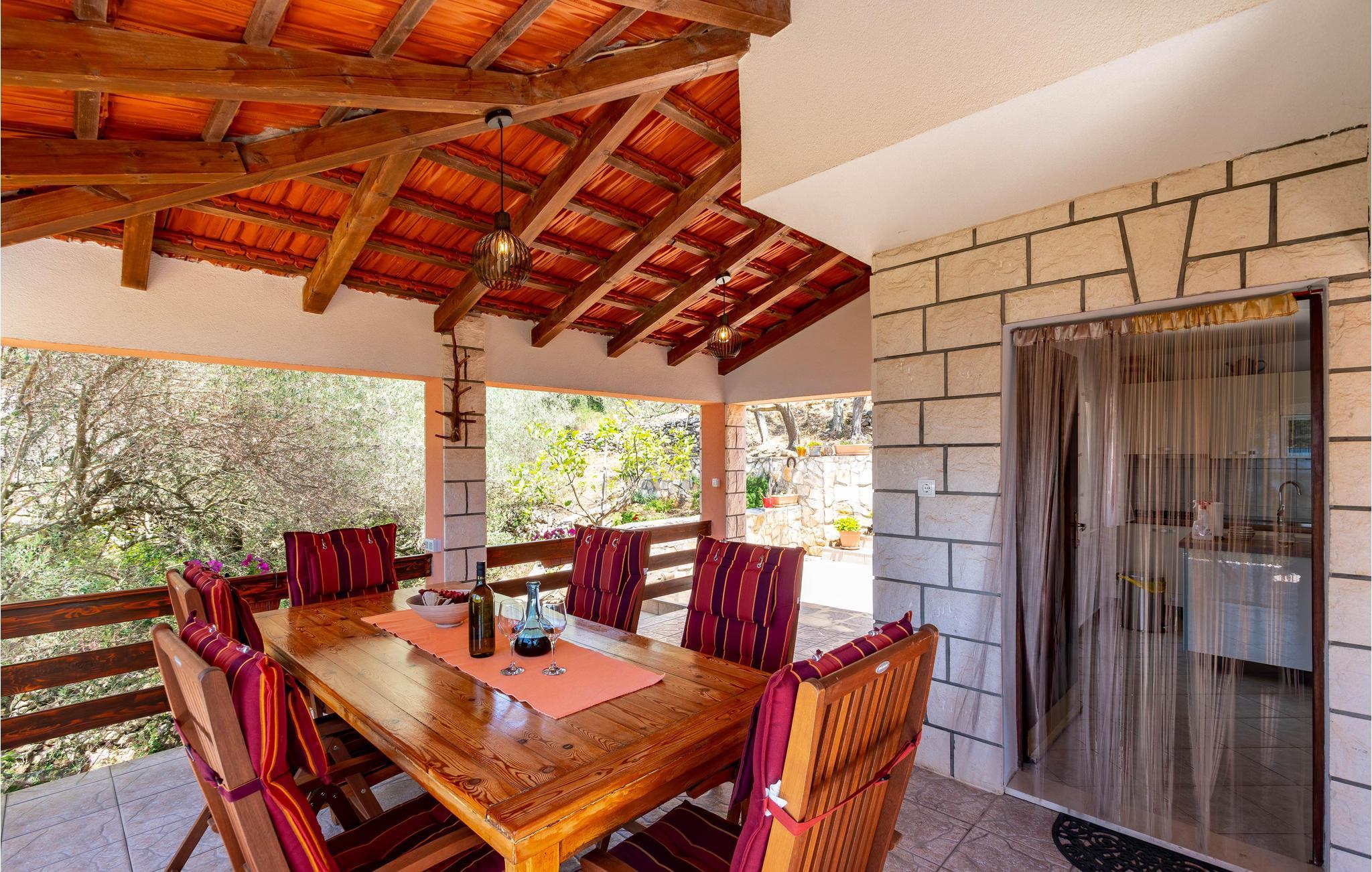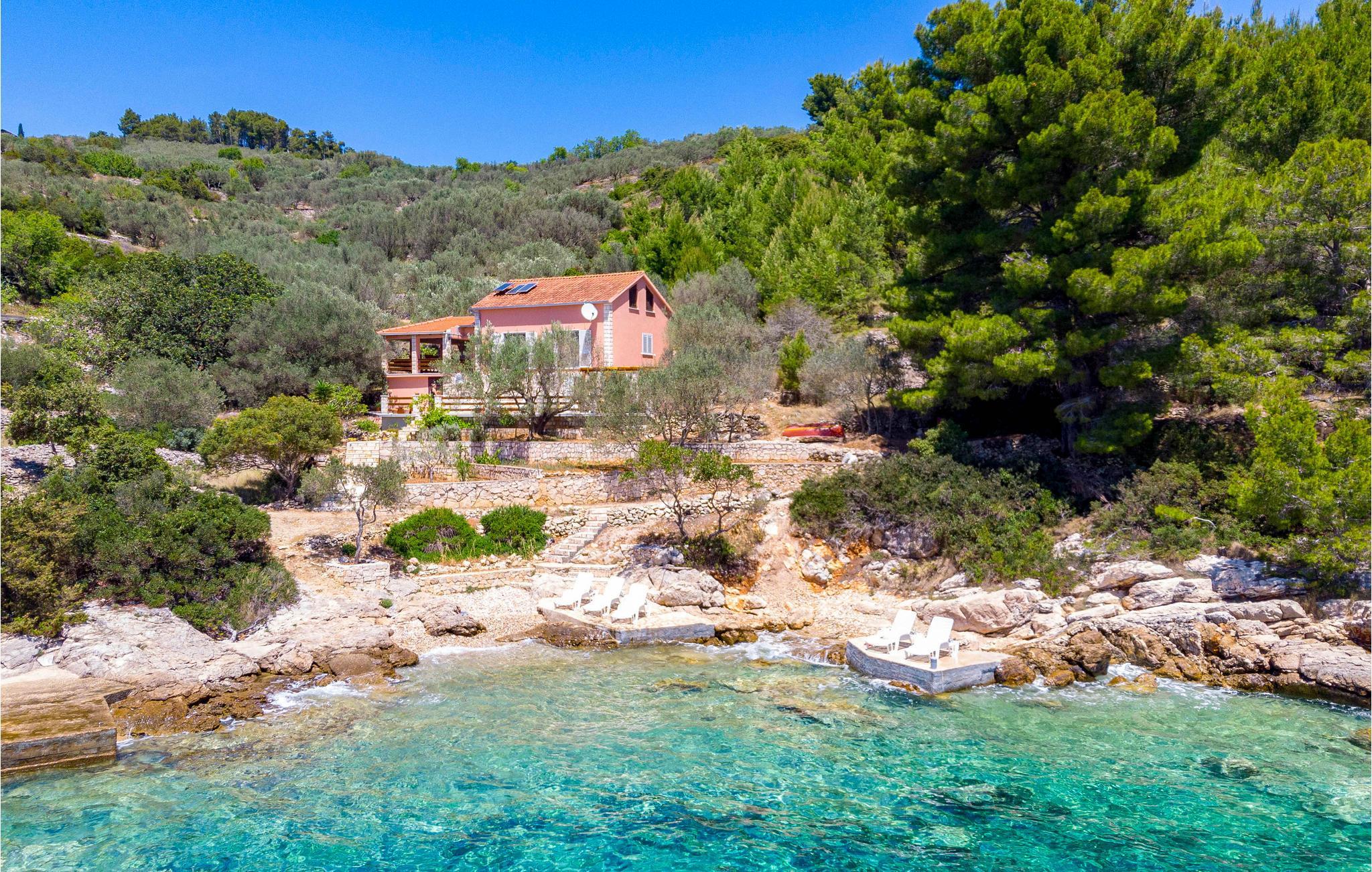 Praktisch eingerichtetes Ferienhaus in idyllischer Lage, nur wenige Schritte vom Meer entfernt und nicht weit vom Hafenort Vela Luka. Genießen Sie Ihren Urlaub auf der geräumigen Terrasse mit Grill. Das Schlafzimmer und das Badezimmer im Erdgeschoss sind separat von außen erreichbar. Da die Stromversorgung ausschließlich über Sonnenenergie und Aggregat betrieben wird, ist die Nutzung von Elektrogeräten nur sehr begrenzt möglich. Die letzten etwa 700 m Zufahrt zum Haus sind nicht asphaltiert, so dass etwas behutsamer gefahren werden sollte. Ein etwa 80 m langer, steiniger Pfad führt Sie von der Straße zum grünen Außenbereich des Hauses.