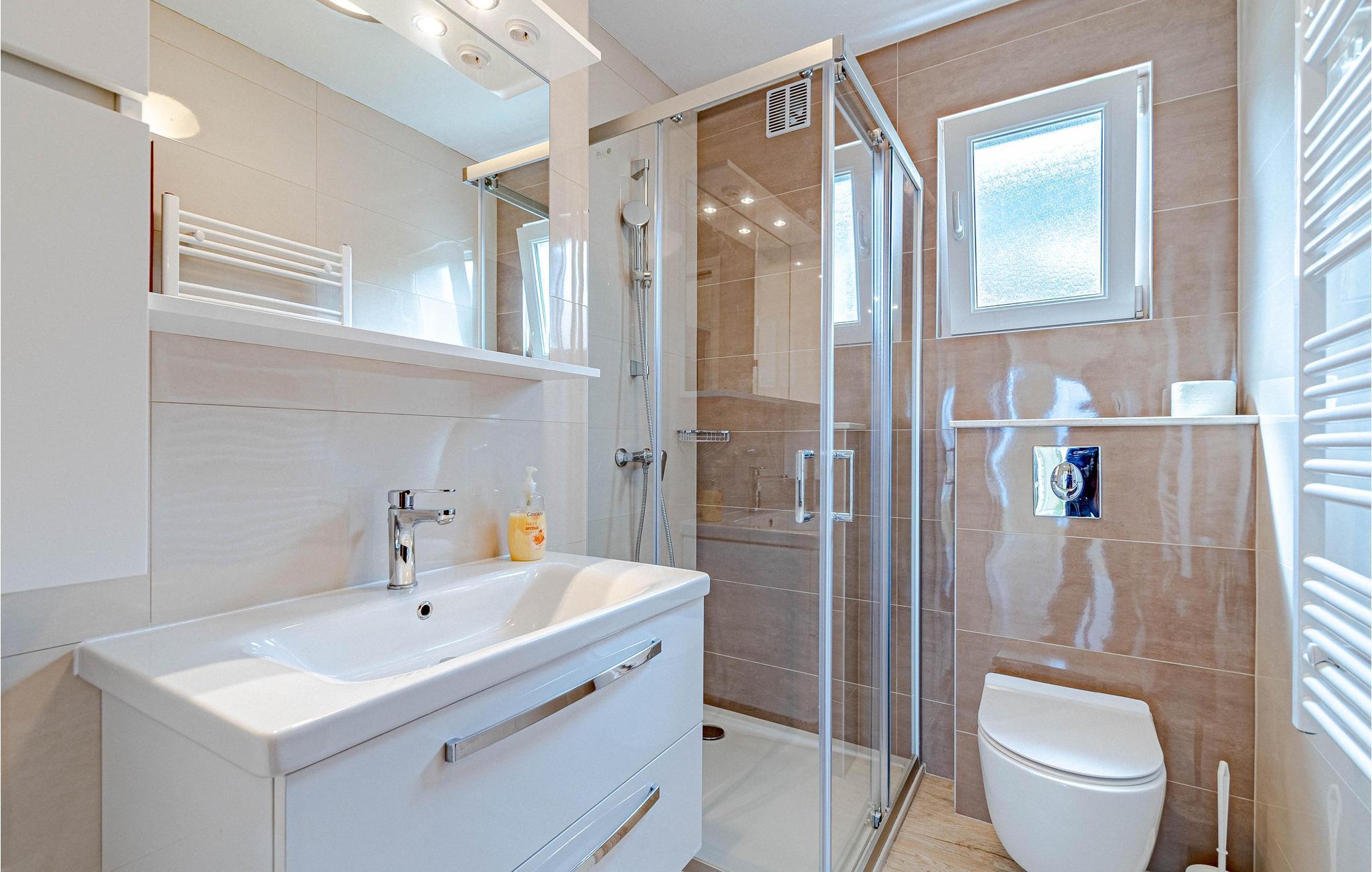 Badezimmer (nr. 2) - WC. Warmes und kaltes Wasser. Dusche