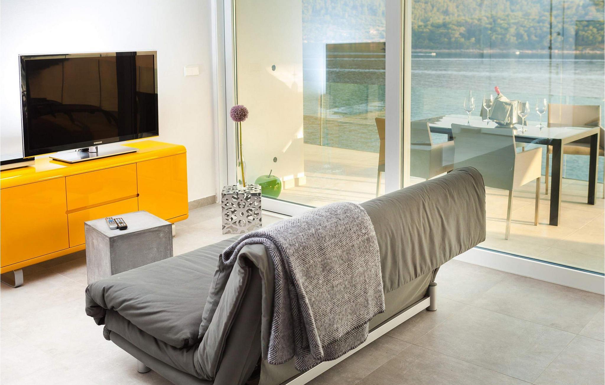 Die beeindruckende Luxusvilla Style and Sea begrüßt Sie in sensationeller Lage auf der malerischen Insel Korcula und verwöhnt Sie mit einem hochwertig ausgestatteten Interieur sowie viel Platz für Ihre Liebsten. Bodentiefe Fensterfronten eröffnen immer wieder das bezaubernde Panorama und sorgen in den minimalistisch gestalteten Räumlichkeiten für ein frisches, lichtdurchflutetes Ambiente. Zaubern Sie kulinarische Highlights, genießen Sie stilvolle Mahlzeiten mit Blick auf die vorbeiziehenden Segelboote und machen Sie es sich auf der eleganten Sofalandschaft im Hauptwohnzimmer gemütlich. Hören Sie Ihre Lieblingssongs über das hochwertige Audiosystem und tanzen Sie die ganze Nacht hindurch – oder ziehen Sie sich für einen ruhigen Fernsehabend in die Dach-Etage zurück.