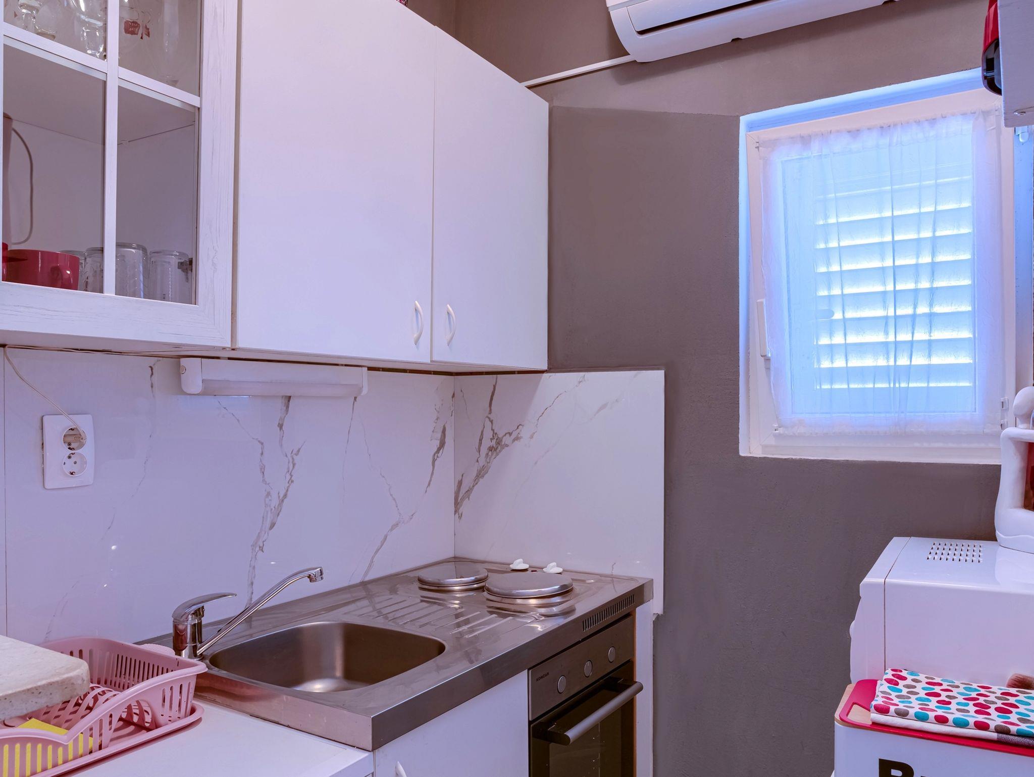 Ferienwohnung bietet Platz für 5 Gäste. Die Betten sind in Schlafzimmern, die es 2 gibt, innerhalb einer Gesamtfläche von 32m2, angeordnet. Die Gäste haben eine eigene Terrasse zur Verfügung, auf der sie in warmen Sommernächten genießen können. Das Apartment bietet Meerblick. Es ist erlaubt, Speisen auf dem Gemeinschafts-Grill vorzubereiten. In der gebuchten Unterkunftseinheit zahlt man am Ort ein Depositum ( der Preis ist an der Internetseite angeführt ). IM PREIS INBEGRIFFEN: Kurtaxe, Endreinigung, Klimatisierung, Internet, Bügeleisen, Bügelbrett, Föhn. VERBINDLICHE ZUSÄTZLICHE KOSTEN: Kaution (50,00 € Einmalzahlung), Aufzahlung für Kurzaufenthalte (prozentualer Zuschlag pro Nächtigungsanzahl: 30% - 1, 20% - 2, 10% - 3). UNVERBINDLICHE ZUSÄTZLICHE KOSTEN: Wäschewaschen (5,00 € Waschen). Die Verfügbarkeit zusätzlicher Dienstleistungen in Ihrem reservierten Termin und die Preise derselben (falls nicht aufgeführt) müssen im Voraus überprüft werden. Zusätzliche Dienstleistungen die in der Zahlungsaufforderung nicht aufgeführt sind werden direkt beim Vermieter bezahlt, angenommen der Gast nutzt auch diese. Ermäßigung auf den Grundpreis: Gratistag 14=13 (bei einem Aufenthalt von 14 Tagen oder mehr erhalten Sie einen Gratistag für den Aufenthalt bis 31.12.26).