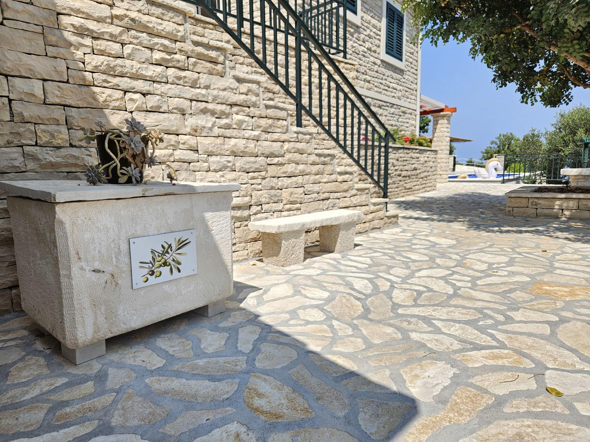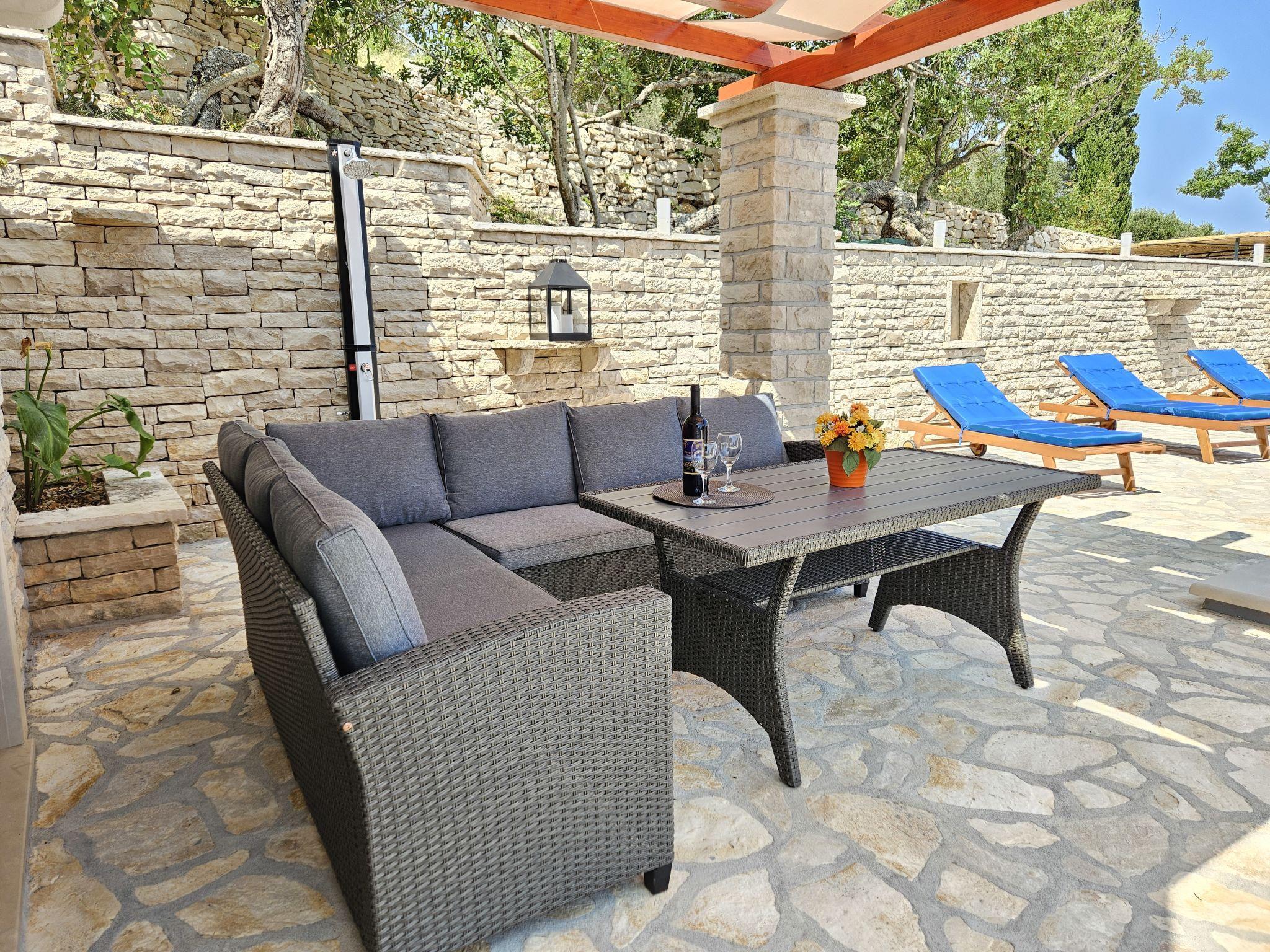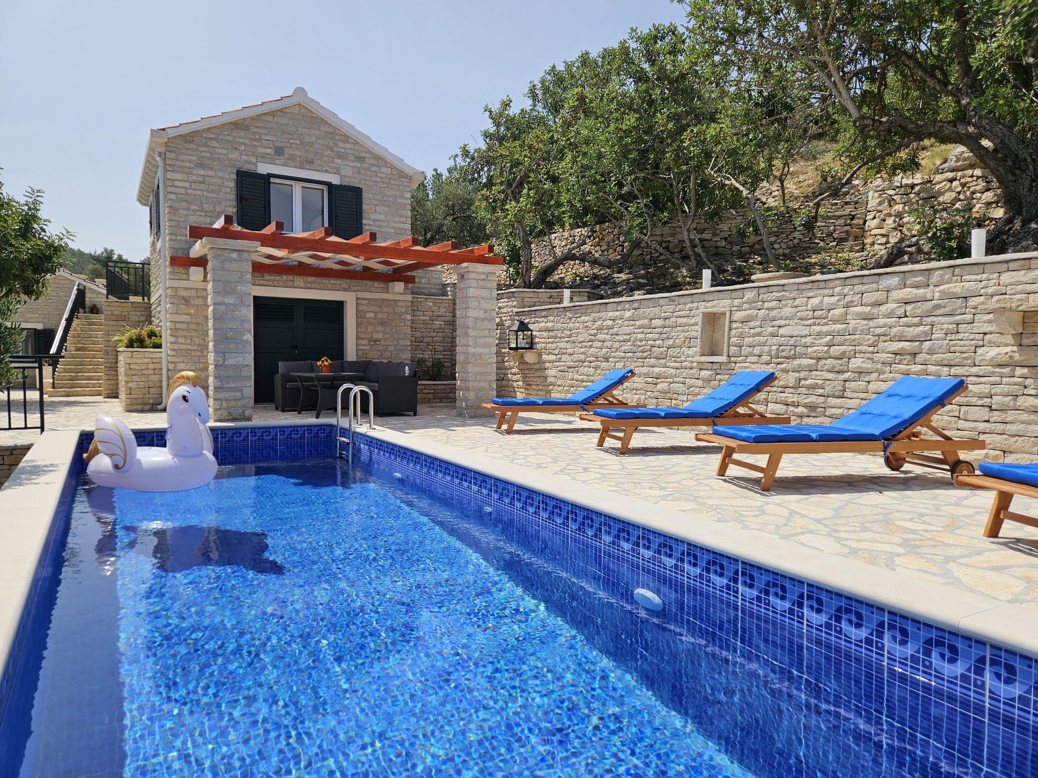 House "Brankovi Dvori". 1.1 km from the centre of Prigradica, in a secluded, quiet, sunny position on a slope, 600 m from the sea, 600 m from the beach. Private: property 1'700 m2, swimming pool angular (24 m2, depth 145 cm, seasonal availability: 01.May. - 14.Oct.). Outdoor shower, pool maintenance by the owner/gardener. In the house: internet access, air conditioning, washing machine. 300 m long motor access to the house (via unmade road). Roofed, parking at the house on the premises. Grocery 1.2 km, supermarket 6 km, restaurant 1.5 km, bus stop 5.8 km.