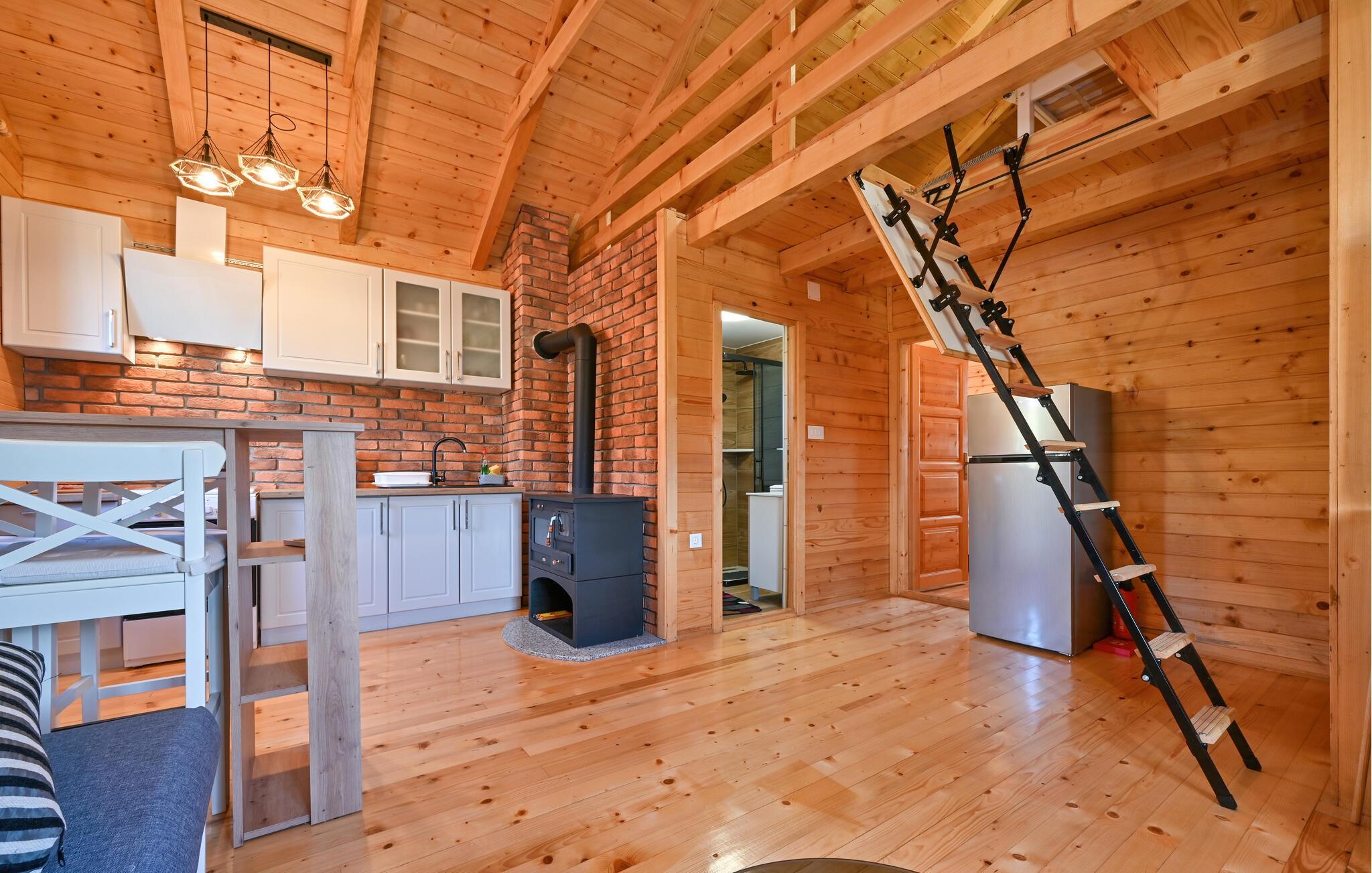 Dieses Holzhaus, umgeben von einem gepflegten und geräumigen Garten, mit Swimmingpool und Blick ins Grüne, bietet seinen Gästen wahre Erholung. Die Wohnfläche erstreckt sich über zwei Etagen. Im Erdgeschoss sind eine Küche mit Essbereich und Wohnzimmer, ein Badezimmer und vor dem Haus gibt es eine überdachte Terrasse mit Grill und Whirlpool. Daneben steht ein Anbau mit Sauna, von der sich ein Panoramablick auf die Landschaft bietet. Im Obergeschoss gibt es zwei Schlafzimmer und eine Terrasse. Das Grundstück hat viele Sport- und Freizeiteinrichtungen für Kinder und Erwachsene. Wir empfehlen auf jeden Fall einen Besuch im Krapina-Neandertalermuseum neben der Krapina-Neandertalerstätte "Hušnjakovo", der Therme Tuhelj mit Wellnessprogrammen, einem Wasserpark für die Kleinsten und vielen weiteren Einrichtungen.
