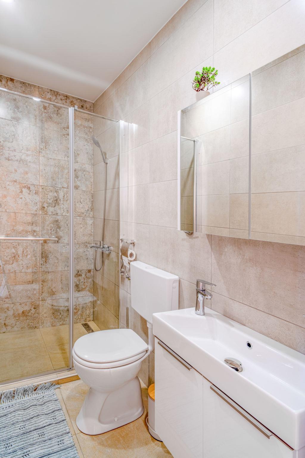 Kalnik 16 km from Križevci: Modern, cosy single-family house "Vila Breg 2", 2 storeys. 42 km from the centre of Varaždin, 69 km from the centre of Zagreb, on a slope. For shared use: property 5'000 m2 with lawn 1'000 m2, trees, swimming pool angular heated (8 x 4 m, depth 145 cm, seasonal availability: 15.Apr. - 14.Oct.) with salt water, internal staircase and salt-electrolysis pool-cleaning system. Shower/WC in the pool area, outdoor shower, hot tub, table tennis, terrace (20 m2), garden furniture, barbecue house, children's playground (slide, swing), pool maintenance by the owner/gardener. In the complex: internet access, sauna, table football. Steep motor access to the house (100 m via unmade road). Parking (for 2 cars) at the house on the premises. Shop 2.5 km, restaurant 3.5 km, café 2.7 km, bicycle rental 3.3 km, bus stop 1 km. Walking paths from the house 50 m. Nearby attractions: Old town Veliki Kalnik 3.6 km, Varaždinske toplice 33 km. Please note: Property ref. HR1740.700.1 is situated on the same property.