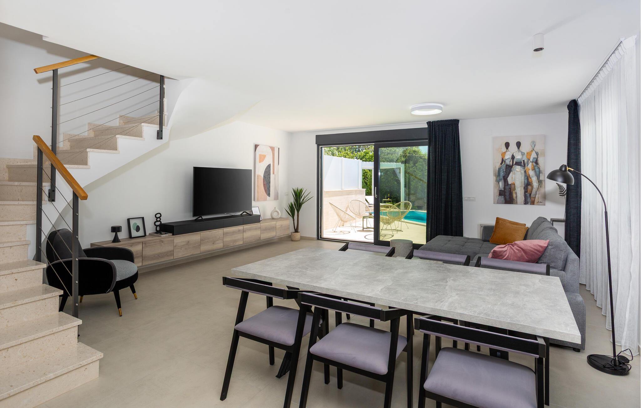 In diesem stilvoll eingerichteten Haus fühlen Sie sich ganz wie zu Hause. Bodentiefe Fenster, dezente Farben und liebevolle Details sorgen für eine entspannte Atmosphäre. Kommen Sie auf dem Designersofa zur Ruhe, entspannen Sie bei einem guten Film oder vertiefen Sie sich in Ihre Urlaubslektüre.
