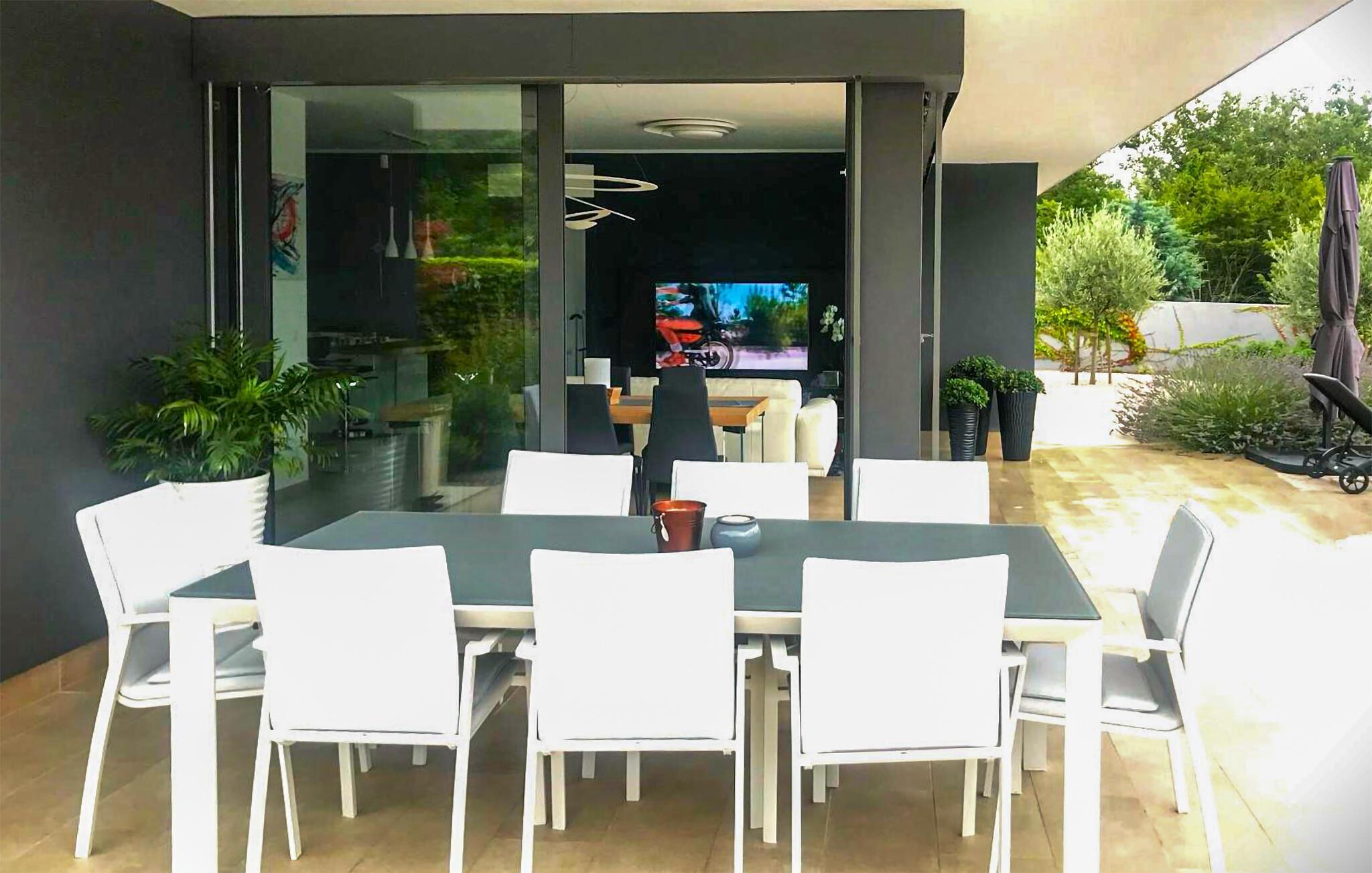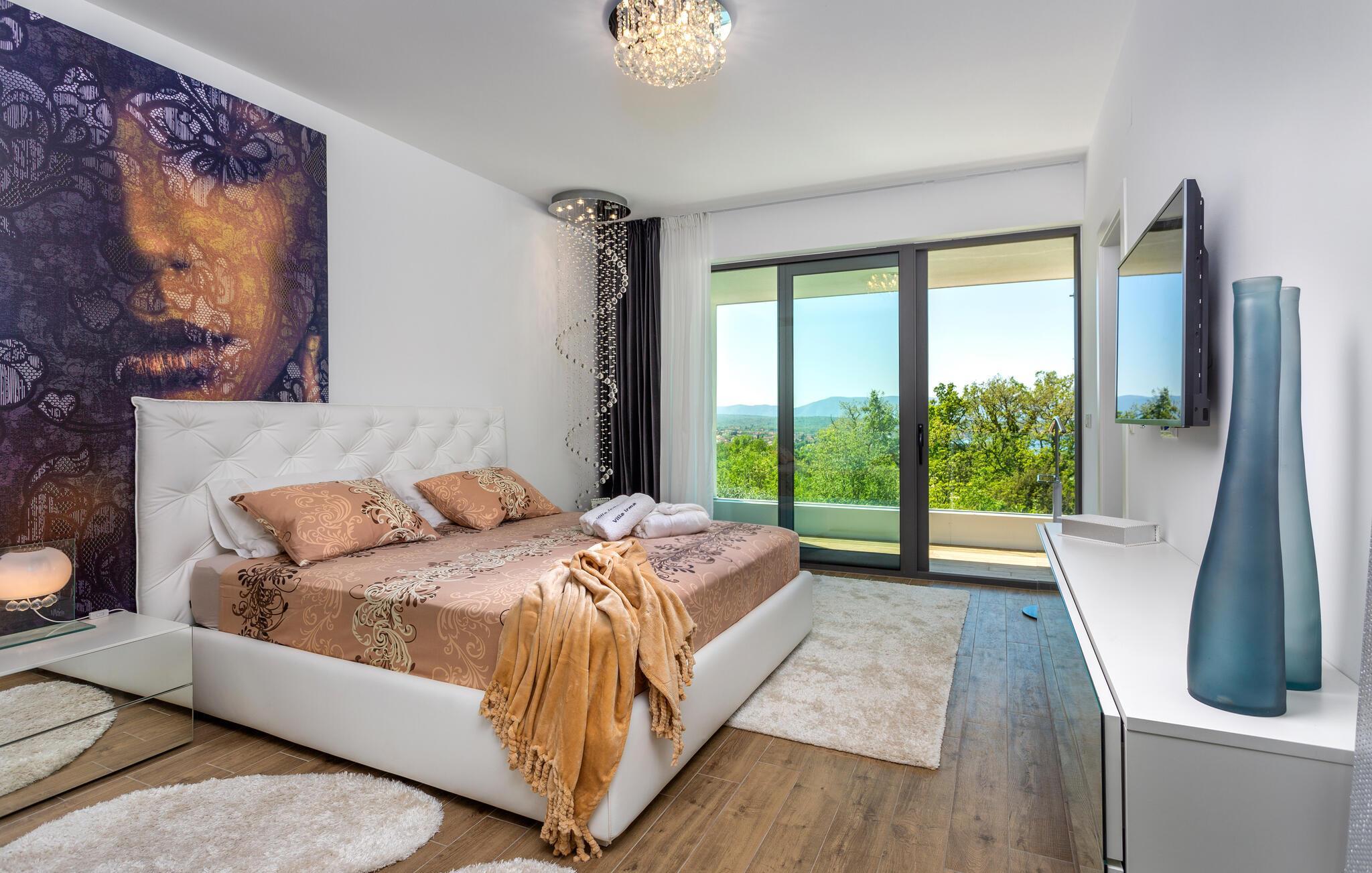 Betreten Sie diese moderne und komfortable Villa, die sich durch Komfort, Design und individuelle Einrichtung auszeichnet. Genießen Sie das Zusammenspiel unterschiedlicher Farben und Auswahl an Kunstwerken, die moderne Wohnkonzept zu einem Erlebnis machen. Entdecken Sie die großen und ansprechend dekorierten Schlafzimmer und freuen sich auf Privatsphäre mit eigenen Schlafzimmern. Blicken Sie vom Balkon auf den schönen Garten, wo Sie blühende Sträucher und grüne Bäume entdecken. Lassen Sie sich dort auf den Gartenmöbeln nieder, speisen unter freiem Himmel oder entspannen im und am Pool und schauen Ihren Kindern beim Plantschen zu.