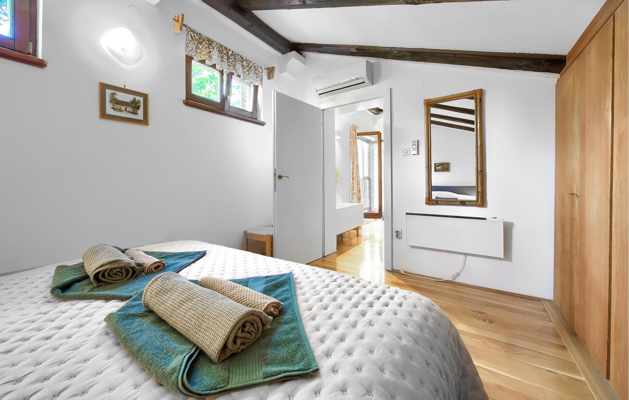 Dieses charmante Ferienhaus auf der Insel Krk verbindet mediterranen Stil mit modernem Komfort und bietet reichlich Privatsphäre. Entspannen Sie im offenen Wohnbereich oder bereiten Sie in der gut ausgestatteten Küche leckere Mahlzeiten zu, die Sie im stilvollen Essbereich genießen können.