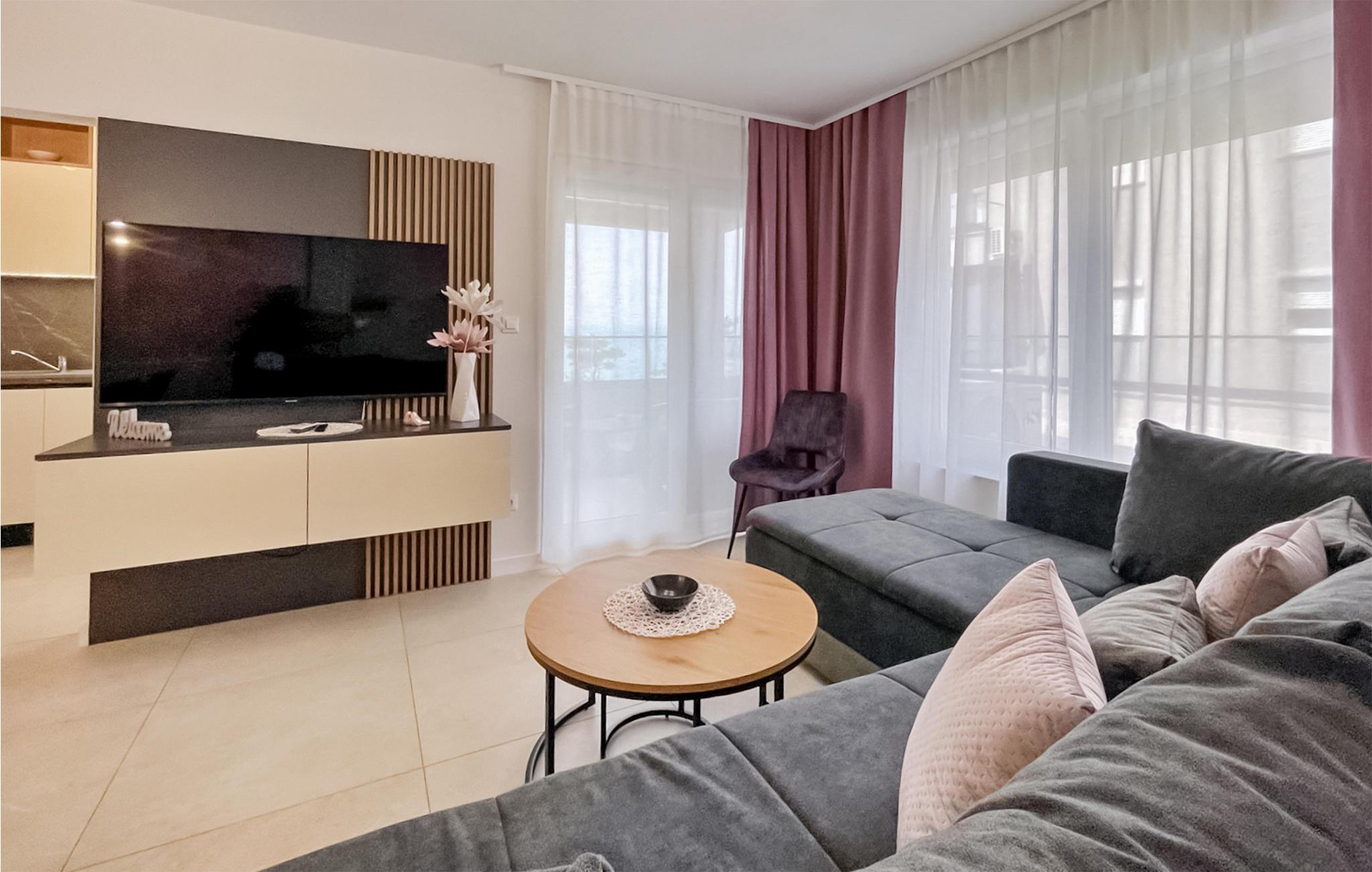 Willkommen in der schönen Wohnung, die Sie in traumhafter Lage am Meer empfängt und in der Sie einen herrlichen Badeurlaub verbringen können. Einladende Innenräume mit einer geschmackvollen und hochwertigen Einladung sowie dezente Farben sorgen hier für einen angenehmen Urlaub. Entspannen Sie auf dem Sofa und genießen Sie Ihren Urlaub in stilvollem Ambiente.