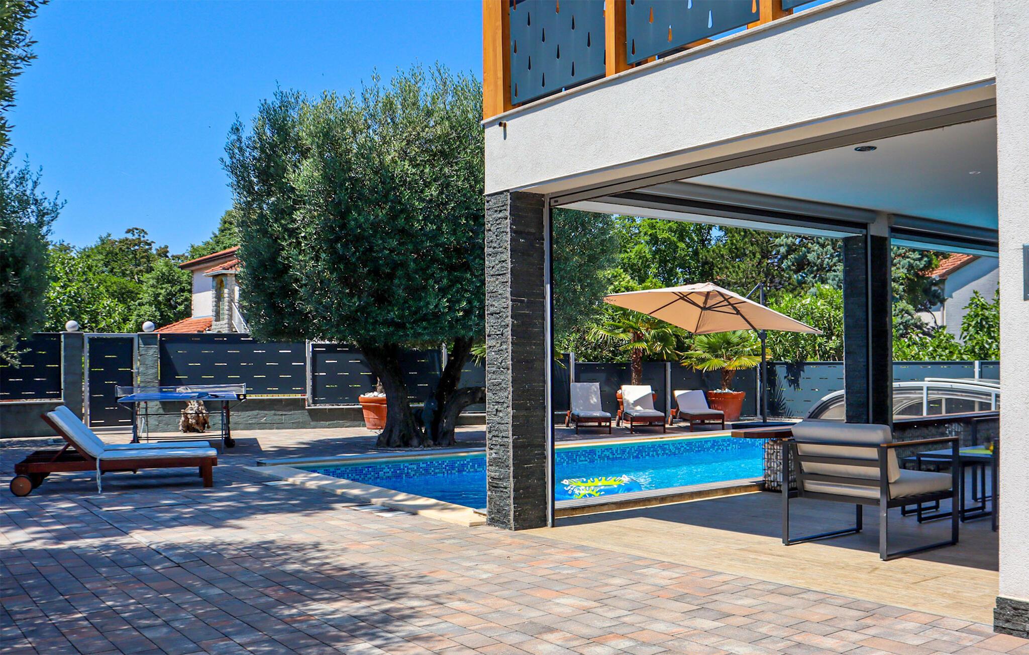 Genießen Sie einen wohltuenden Urlaub in diesem charmanten Ferienhaus in Malinska auf der Insel Krk. Die Innenräume sind geschmackvoll gestaltet, mit einem offenen Wohnbereich, einer gut ausgestatteten Küche und gemütlichen Schlafzimmern, die zum Entspannen einladen. Das stilvolle Interieur und die sorgfältig ausgewählten Möbel schaffen eine behagliche Atmosphäre, in der Sie sich sofort wohlfühlen werden.