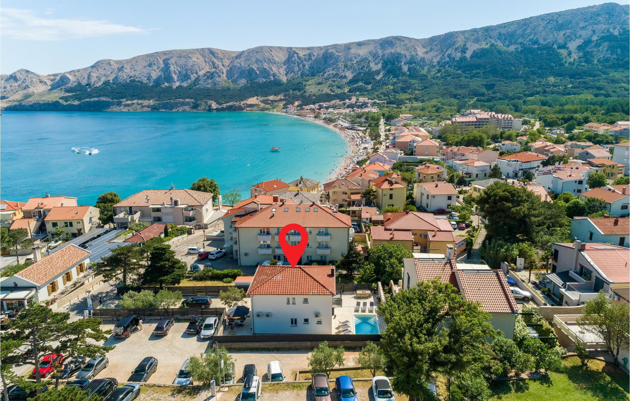 In der geschützten Bucht der Stadt Baska, nur einen Katzensprung vom Haus entfernt, finden Sie einen langen weißen Kieselstrand. Hier können Ihre Kinder ungestört im Meer spielen und Sie sich in der Sonne brutzeln. In der Stadt finden das Jahr über verschiedene traditionelle Feste statt, die es sich lohnt zu besuchen. Sind Sie ein Adrenalin-Junkie? Probieren Sie eine Jetski-Fahrt oder die Meeresseilbahn in luftiger Höhe in Punt aus. Ebenso gibt es in der Nähe Möglichkeiten zu tauchen, zu wandern oder eine Tropfsteinhöhle zu besuchen. Erkunden Sie die wundervolle Natur der Insel auf den vielen markierten Wanderwegen und probieren auf Ihre Ausflüge lokalen Wein und Olivenöl.