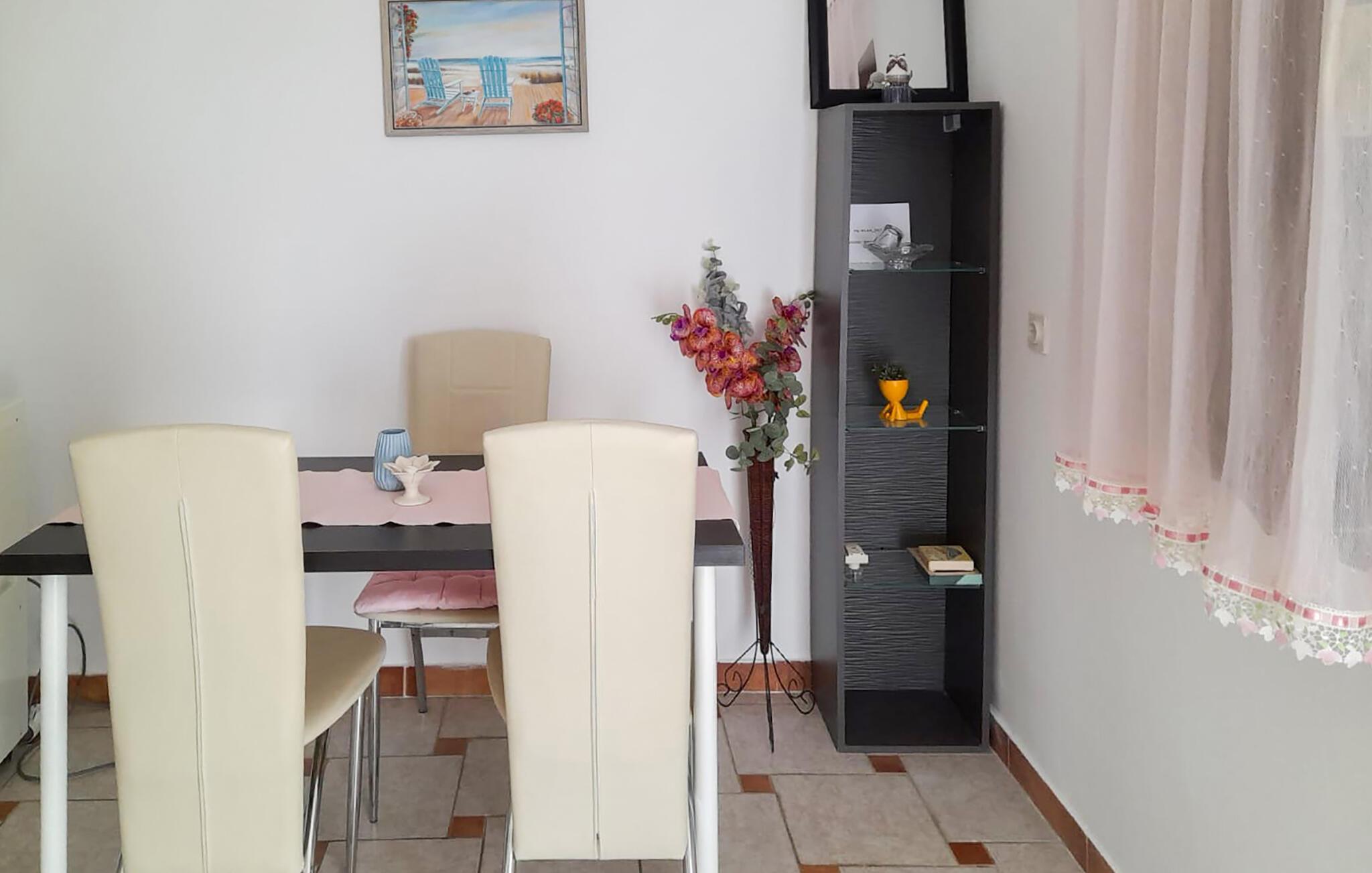 Verbringen Sie einen ruhigen und angenehmen Urlaub in der kleinen Inselstadt Gabonjin auf der goldenen Insel Krk. In diesem Familienhaus gibt es 3 kleinere Wohnungen, jede mit einer eigenen überdachten Terrasse. Der Garten ist eingezäunt, grün und voller Blumen. Der freundliche Gastgeber befindet sich im Erdgeschoss seiner Wohnung und hilft Ihnen unaufdringlich bei allem. Sie haben einen eingebauten, gemeinsamen Grill, auf dem Sie sich am Abend in geselliger Runde leckere Barbecue-Gerichte zubereiten können. Die Atmosphäre des Hauses ist gemütlich und angenehm.