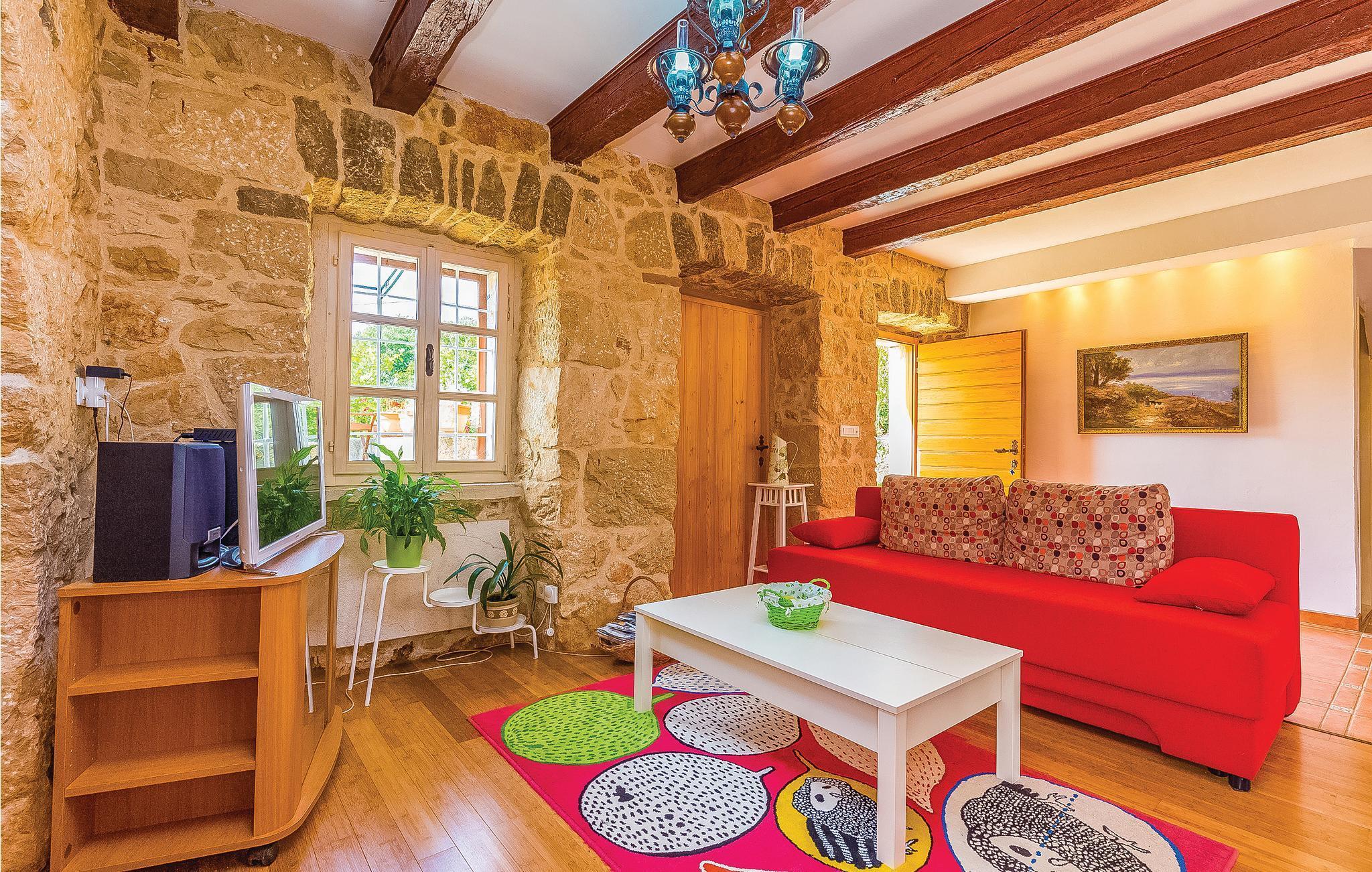 Dieses Ferienhaus ist von einem wunderschön angelegten und eingezäunten Garten umgeben und daher ideal für einen Familienurlaub. Hier lauschen Sie den Klängen der Natur und Sie haben die Hektik und den Lärm der Stadt in weiter Ferne. Im Erdgeschoss liegt ein schön eingerichteter Wohnbereich mit der Küche und im ersten Stock sind die Schlafzimmer untergebracht. Gemütliche Stunden werden Sie auf der Terrasse vor dem Wohnbereich verbringen. Hier können Sie im Freien speisen, während Ihre Kinder im großen Außenpooll oder im Garten spielen. Die Badestrände, die guten Restaurants und die guten kulturellen Angebote der Ferienorte Baska, Krk, Malinska und Vrbnik erreichen Sie bequem mit dem Auto.