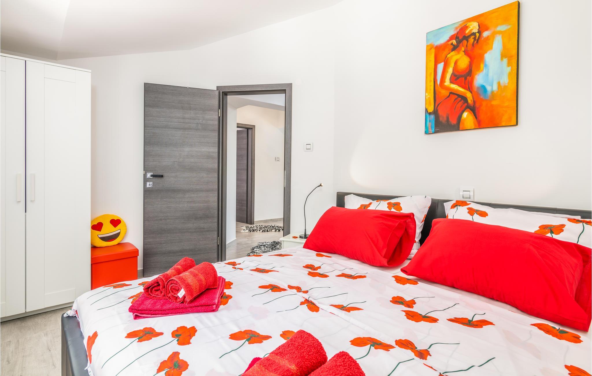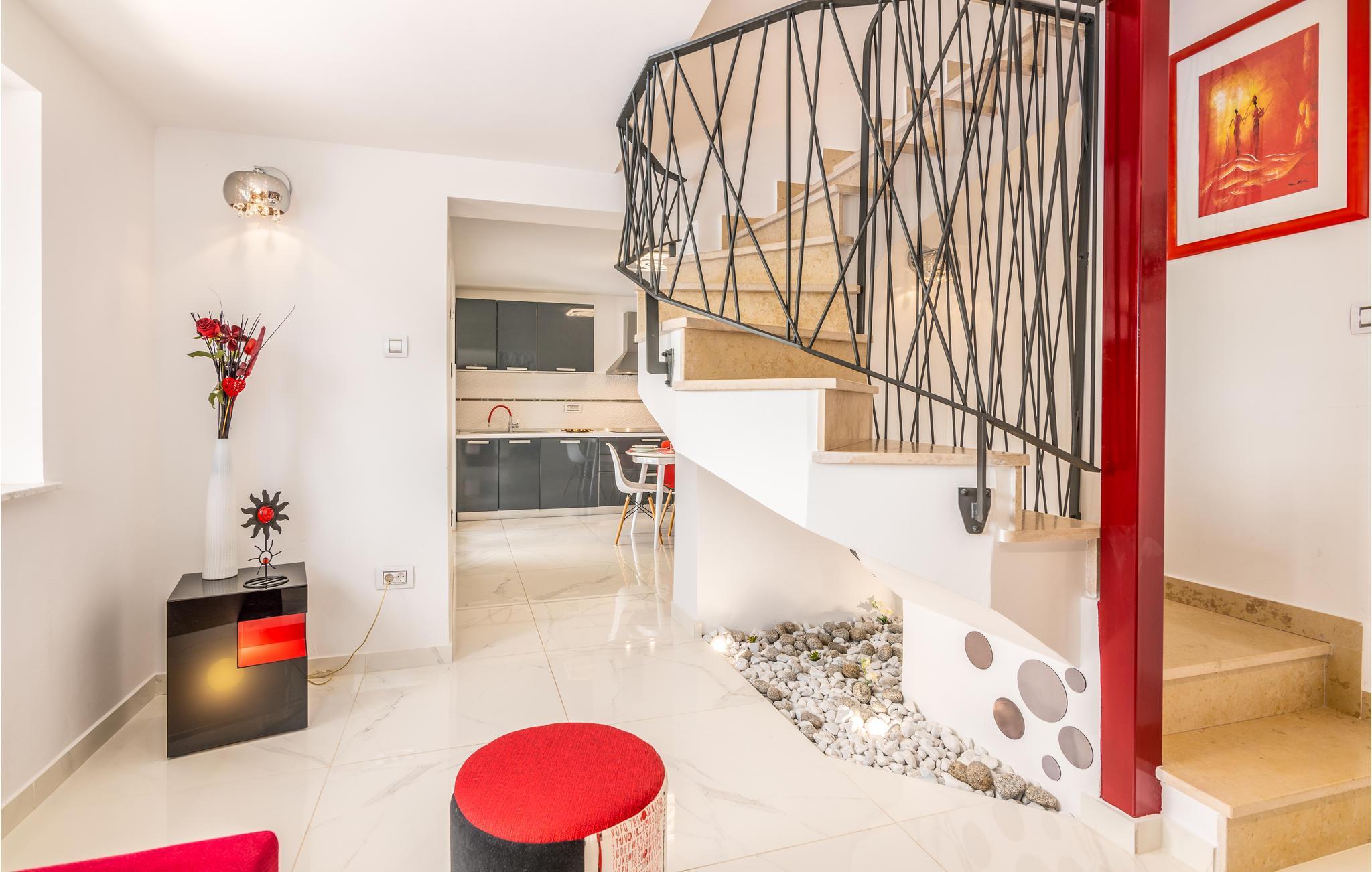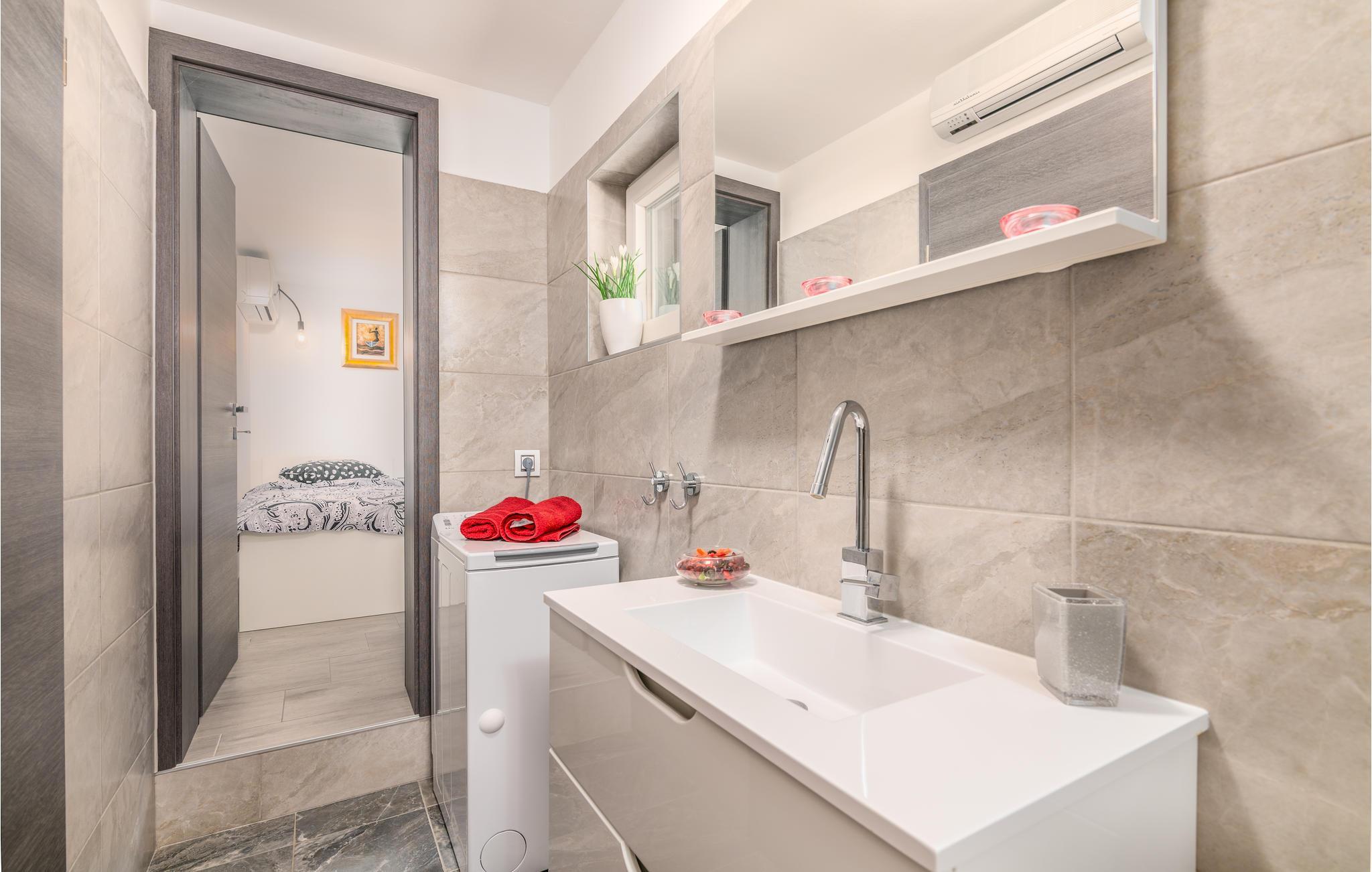 In Klimno, einer kleinen Küstenortschaft auf der goldenen Insel Krk, liegt dieses herrliche Doppelhaus. Das geschmackvoll eingerichtete Ferienhaus mit Pool liegt auf einem terrassenartigen Terrain, sodass Sie das Erdgeschoss über Außentreppen erreichen können. Die Sommerküche mit Grill und überdachte Terrasse liegt im hinteren Teil des Grundstücks, zu dem Sie direkt von der oberen Etage gelangen. Im unteren Teil des Grundstücks, wo sich das Erdgeschoss befindet. ist der Außenpool mit Sonnenbereich. Dort können Sie sich mit einem guten Buch entspannen, während die Kinder im Pool planschen. Entdecken Sie viele schöne Strände auf der Insel und den kleinen Sandstrand in der Nähe. Im Ortszentrum gibt es Einkaufsläden, Restaurants und alle notwendigen Einrichtungen, die Sie für Ihren Urlaub benötigen. Erforschen Sie die Insel Krk mit reichem Angebot an Unterhaltung, Kultur und Sport.