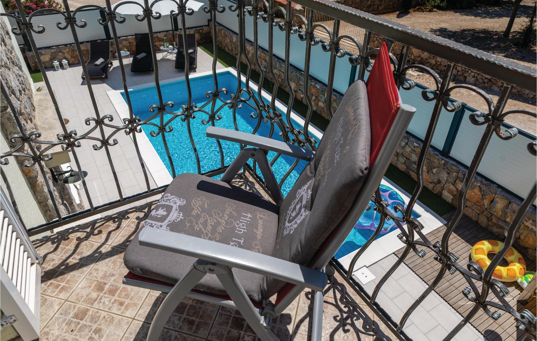 Dieses elegant eingerichtete Ferienhaus mit Pool befindet sich im Dorf Kornic, auf der Insel Krk. Das komfortable Interieur erstreckt sich über zwei Etagen, den Wohnbereich findenen Sie im Erdgeschoss und die Schlafzimmer im ersten Stock. Lassen Sie sich am Pool in dieser mediterranen Umgebung verwöhnen und entspannen Sie sich, bis Sie sich für weitere Aktivitäten bereit fühlen: finden Sie hier Ihre Lieblingsattraktion: die Insel bietet verschiedene Radstrecken, und am Dunat, dem ersten nahe gelegenen Strand, teilweise sandig, können Sie Wake Boarding am Ski-Lift versuchen, Segeln, Surfen und Beachvolleyball spielen. Viele Restaurants bieten ein erstklassiges gastronomisches Angebot, das idealerweise von einem Glas Vrbovacka žlahtina, einem hochwertigen, trockenen lokalen Weißwein, begleitet wird.