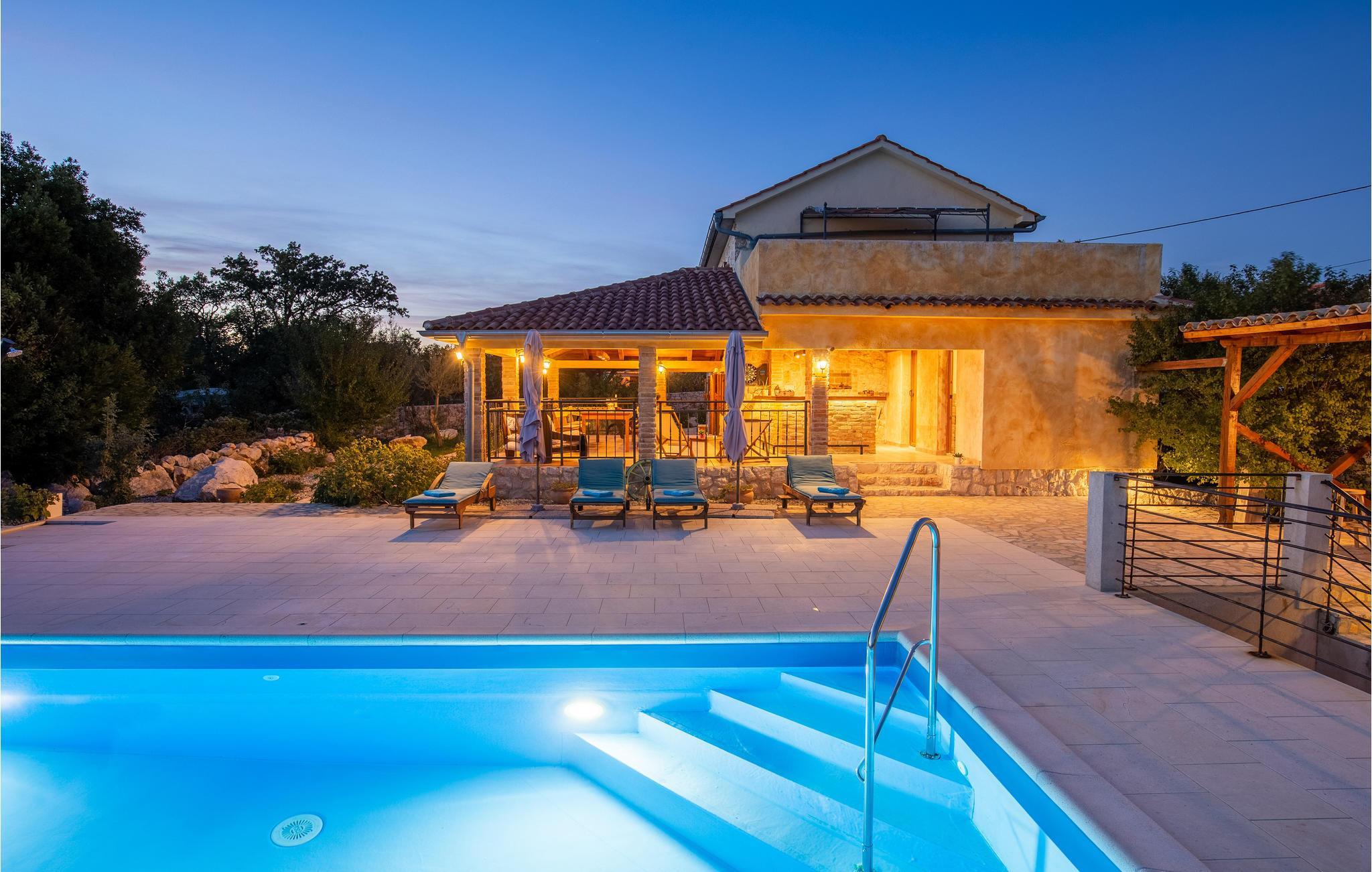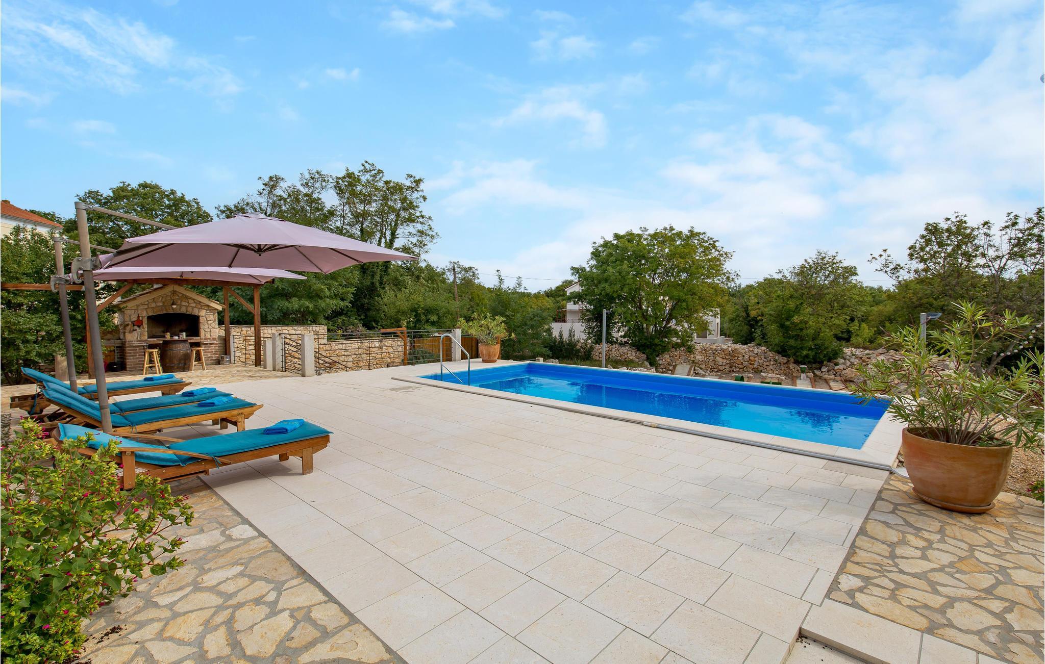 Auf der Insel Krk liegt dieses schöne, komfortable Ferienhaus in der kleinen Stadt Kras. Es ist eine ideale Mischung aus modernem und traditionellem Design. Das Haus ist eine ideale Wahl für eine Familie, die einen erholsamen Urlaub inmitten der Natur erleben möchte. Der gepflegte, umzäunte Garten bietet einen schönen Blick über die Landschaft. Es gibt zwei Badezimmer. Das im Erdgeschoss gelegene Bad ist nur von draußen zugänglich. Besuchen Sie die nahe gelegenen Küstenstädte Krk und Malinska, die eine große Auswahl an Restaurants, Cafés und Veranstaltungen bieten.