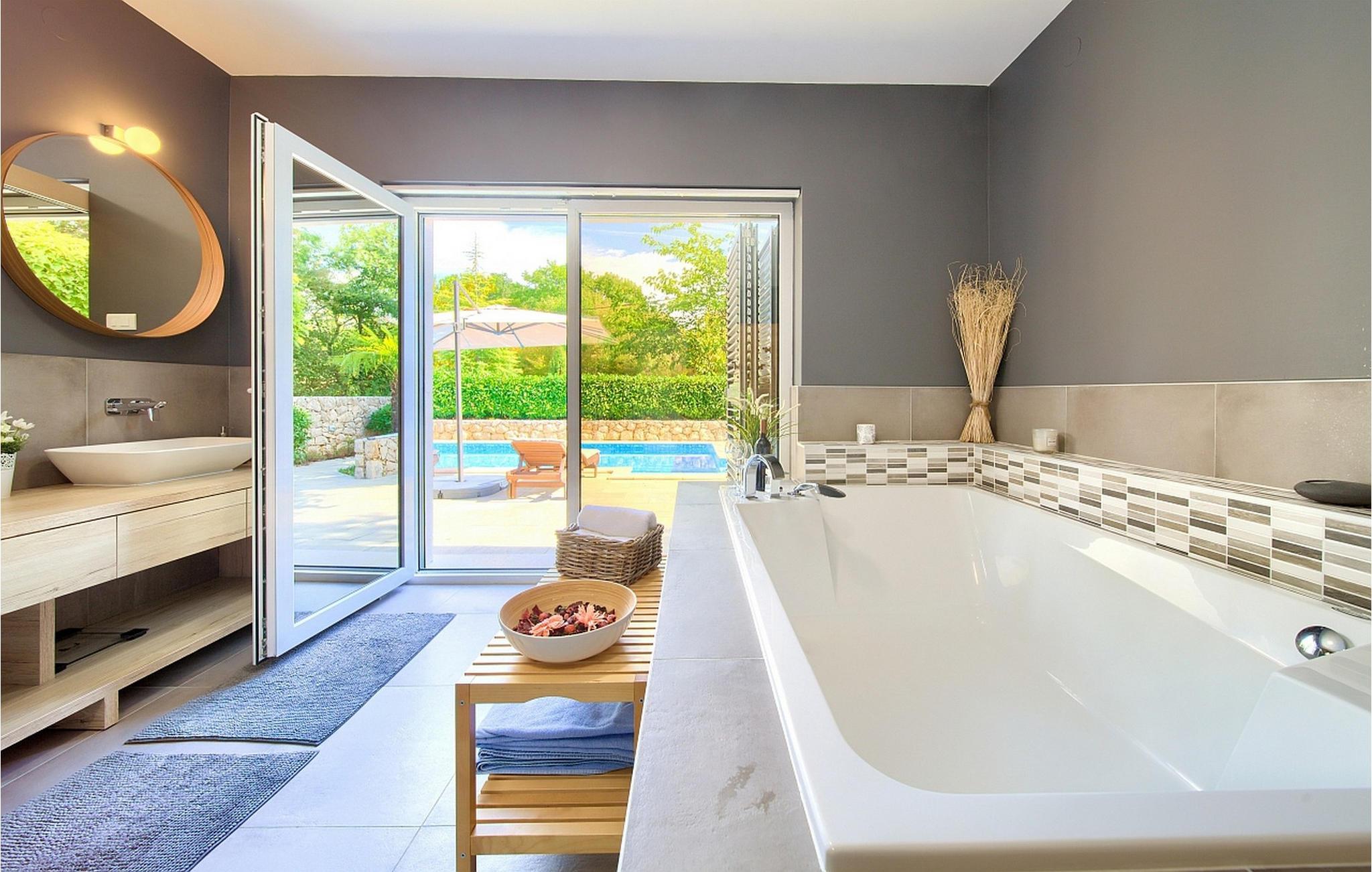 Die luxuriöse Villa Gabrijela ist die perfekte Wahl für echte Entspannung und Naturgenuss. Da sich die Villa auf der Insel Krk in Kras befindet, bietet sie Ihnen die Möglichkeit, der Realität zu entfliehen und fernab der Hektik des Alltags zu entspannen, indem Sie die wunderschöne Landschaft genießen. Die Villa ist hervorragend eingerichtet und bietet Ihnen, was noch wichtiger ist, absolute Privatsphäre. Die Villa besteht aus vier hervorragend eingerichteten Schlafzimmern mit Doppelbetten. Jedes der vier Schlafzimmer verfügt über einen Fernseher und ist klimatisiert. Die Schlafzimmer sind geräumig und luftig. Villa Gabrijela bietet bequem Platz für 8 Personen (+3 zusätzliche Personen). Die Villa verfügt außerdem über drei Badezimmer und einen Wellnessbereich, der für Ihren ultimativen Komfort geschaffen wurde. Die Villa verfügt über eine voll ausgestattete, moderne Küche, die allen Ihren Bedürfnissen gerecht wird. Die Küche öffnet sich zum Essbereich und zum gemütlichen Wohnzimmer. Dieser helle Raum ist offen und ermöglicht den Gästen einen herrlichen Blick in den Garten und den Swimmingpool. Die Villa ist 185 m² groß und erstreckt sich über ein 800 m² großes Grundstück. Der Außenbereich bietet auch einen herrlichen Swimmingpool mit Liegestühlen. Der Pool ist 32 m² groß. Der Bereich rund um das Schwimmbad ist direkt mit dem Grillplatz verbunden, wo Sie mit Ihrer Familie und Freunden frisch zubereitete Mahlzeiten genießen können. * In unserem Angebot finden Sie auch Yoga-Kurse während Ihres Aufenthalts in der Villa Gabrijela. Sie können zwischen Morgentraining und Training am frühen Abend wählen. Der Unterricht wird nach Ihren Wünschen und Möglichkeiten gestaltet und von der zertifizierten Lehrerin E-RYT 200 Gabrijela Pržulj Lelic geleitet. Wenn Sie einige unserer Yoga-Pakete zu speziellen Gästepreisen wählen, bieten wir Ihnen auch kostenlose bioenergetische Heilbehandlungen nach der Methode von Zdenko Domancic an (optional). Für weitere Details kontaktieren Sie uns bitte. Geben Sie Ihrem Aufenthalt einen Mehrwert! * Der Pool ist beheizt und vom 15.04. bis 12.10. geöffnet. Die Villa verfügt über einen Außenwhirlpool und eine Sauna. * Bei Reservierungen von weniger als 5 Nächten wird eine Reinigungsgebühr von 150 € erhoben. Haustiere sind in dieser Unterkunft nach Ermessen des Eigentümers oder gegen eine Gebühr gestattet. Bitte beachten Sie, dass diese Unterkunft keine Jugendgruppen oder Junggesellenabschiede akzeptiert. Eine Jugendgruppe in dieser Unterkunft besteht aus Personen unter 30 Jahren. Buchen Sie diese Unterkunft nicht, wenn Sie eine Jugendgruppe oder ein Junggesellenabschied sind, da Ihre Buchung nach der Buchung abgelehnt wird, was auch bei der Ankunft in der Unterkunft oder während Ihres Aufenthalts der Fall sein kann, und Sie keine Rückerstattung erhalten.
