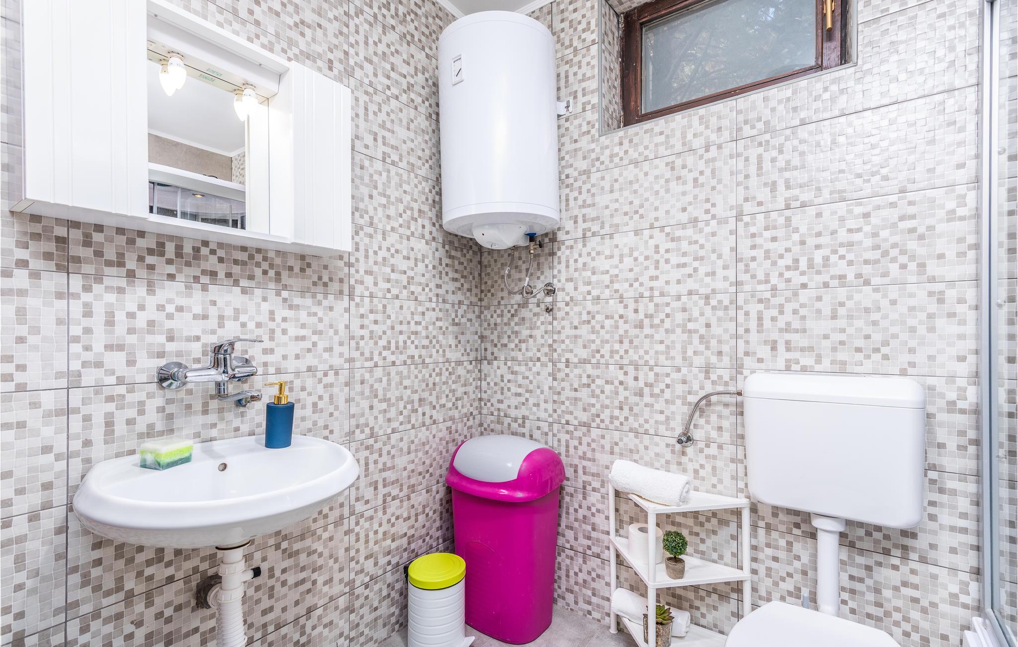 Badezimmer (nr. 1) - WC. Warmes und kaltes Wasser. Badewanne