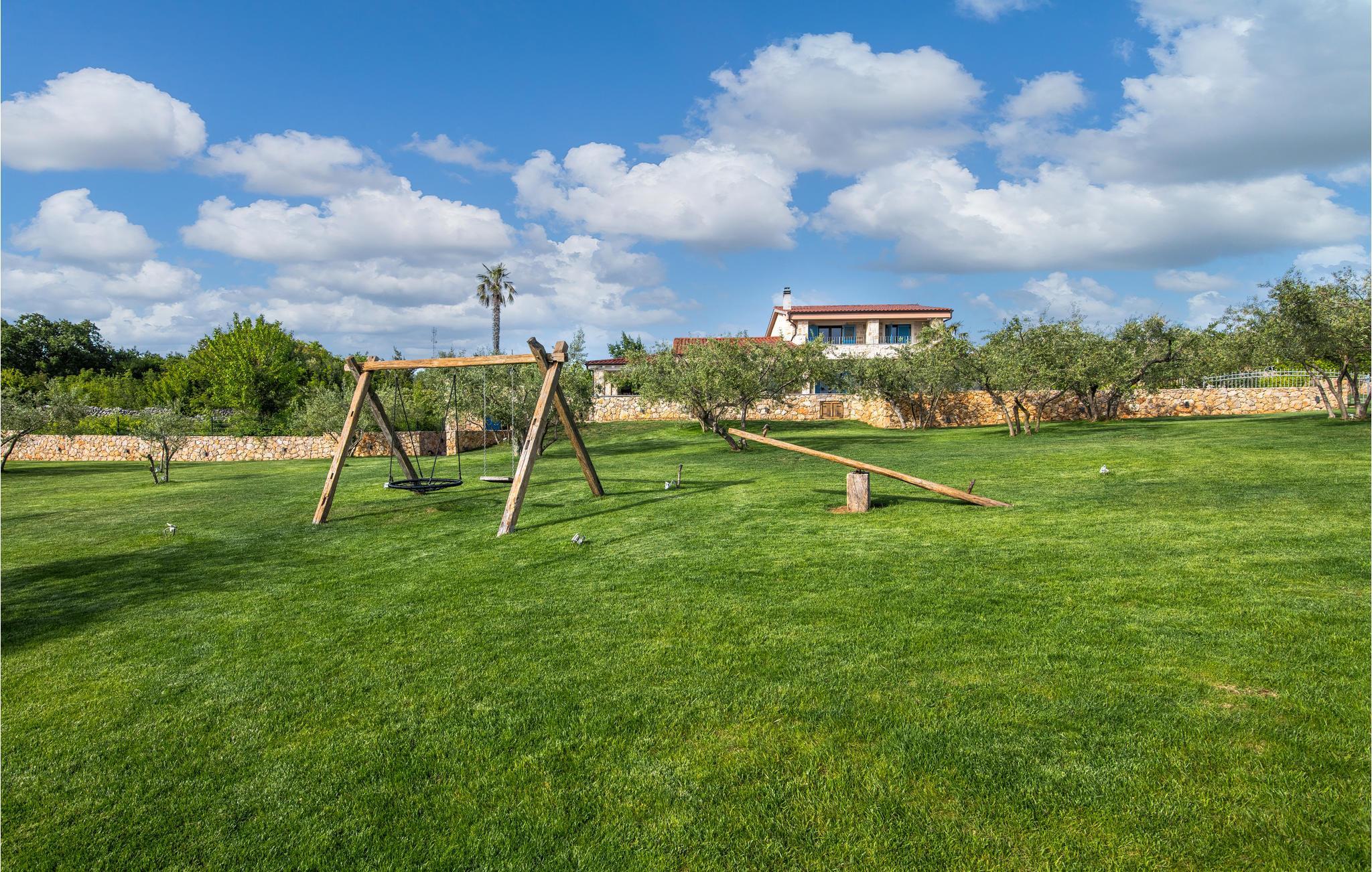 Wünschen Sie sich einen perfekten und erholsamen Urlaub, umgeben von unberührter Natur, dann sind Sie in dem malerischen Ort Linardici, auf der Insel Krk genau richtig. Im unteren Teil des Ortes liegt dieses fantastische Anwesen, das sich auf insgesamt 7000 m² erstreckt, was einer Größe von zwei Fußballfeldern entspricht. Verbringen Sie Ihren Urlaub in einem dieser drei Villen (CKI216, CKI217 und CKI218). In diesen schönen Ferienhäuser mit Pool genießen Sie viel Privatsphäre und jedes Haus ist umzäunt. Die Häuser sind eine Kombination traditionellen Baustils dieser Region und moderner Architektur. Zusätzlich teilen Sie sich noch einen 5000 m² großen Olivenhain, der über 120 Jahr alt ist. Im Schatten dieser vielen Olivenbäume können Ihre Kinder unbeschwert spielen. Es steht Ihnen auch ein gemeinsamer Platz mit Feuerstelle und Grill zur Verfügung. Spielen Sie eine Runde Petanque an der gemeinsamen Petanque-Bahn und genießen den gepflegten Rasen im Wembley-Stil. Erfrischen Sie sich im Salzwasser-Pool oder entdecken herrliche Strände. Lernen Sie die Insel Krk kennen und genießen Sie Kultur, Geschichte, Olivenhaine, Rad- und Wanderstrecken, sowie viele Möglichkeiten für einen aktiven Urlaub. Kosten Sie herrliche Gerichte wie z.B. Lammfleisch-Spezialitäten, heimischen Käse, geräucherten Schinken, frischen Fisch, der vom Meer direkt auf dem Teller landet und viele andere Köstlichkeiten, die mit kaltgepresstem heimischen Olivenöl angerichtet werden. Erleben Sie einen unvergesslichen Aufenthalt, an den Sie sich noch lange mit einem zufriedenen Lächeln erinnern werden.
