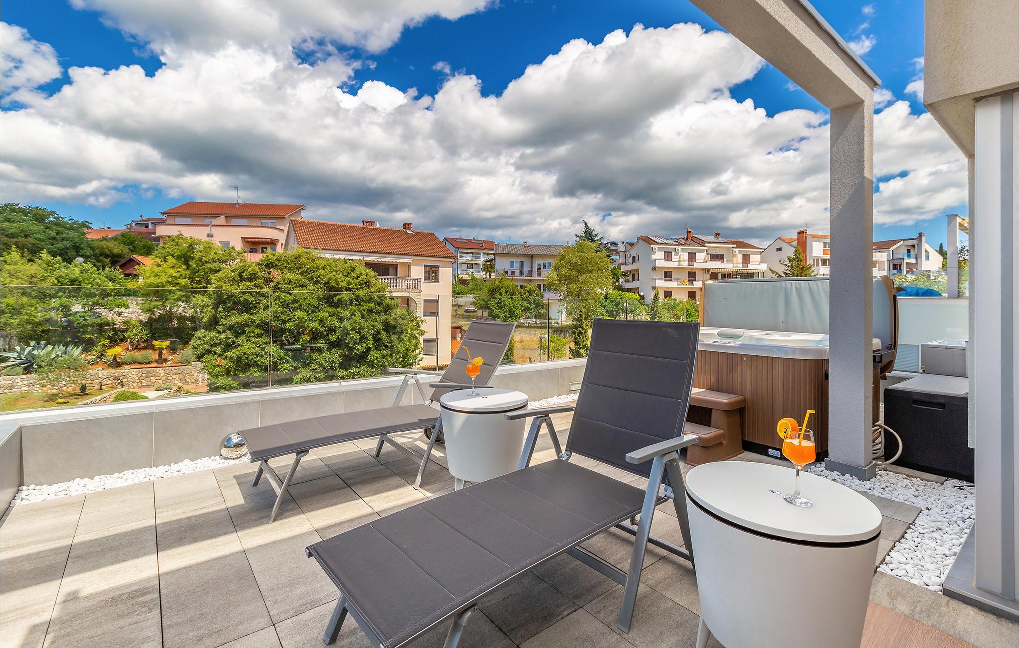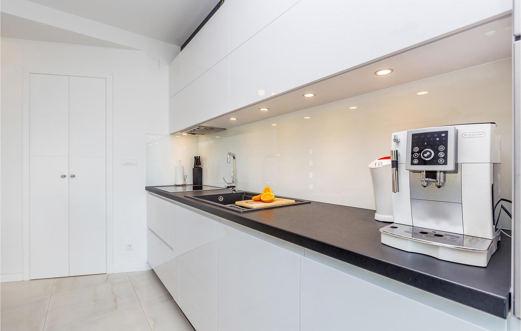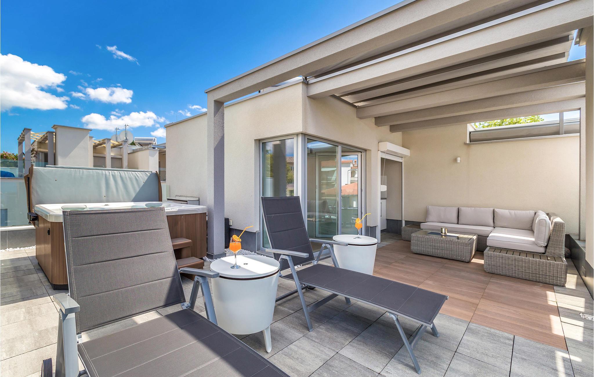 Im Ort Malinska, auf der Insel Krk, steht dieses moderne Ferienhaus. Im Erdgeschoss erwartet Sie ein geräumiger Wohnraum mit angrenzender Küche. Direkt von diesem Bereich geht es in den Garten und der Sonnenterrasse mit Außenpool. Im ersten Stock finden Sie die Schlafzimmer, während der Hauptvorteil dieses schönen Hauses eigentlich im zweiten Stock liegt. Denn auf der gesamten Etage breitet sich die attraktive Dachterrasse mit einer kleinen Küche im Freien im Freien aus. Relaxen Sie im Whirlpool für 4. Sie werden, wenn Sie nicht gerade im Pool planschen, die meiste Zeit hier verbringen und die schönen Momente der Entspannung mit Familie oder mit Freunden mit einer wundervollen Aussicht auf das Meer und den Ort Malinska kombinieren. Ein idealer Ort, sich vom Stress und dem beschleunigten Tempo des Alltags zu entspannen. In der Nähe befinden sich öffentliche Einrichtungen: Geschäfte, Souvenirläden, Apotheke, Restaurants und Bars. Wenn Sie Lust auf Schwimmen im Meer haben, sind die nahe gelegenen Stränden bequem zu Fuß erreichbar. Malinska ist ein interessanter Inselort und bietet zahlreiche Einrichtungen für einen unvergesslichen Urlaub. Entdecken Sie die reiche Geschichte und das kulturelle Erbe der Insel. Genießen Sie einen aktiven Urlaub mit Wakeboarding in Punta oder auf der Kartbahn in Krk. Entspannen Sie bei romantischen Spaziergängen an schönen Promenaden, besuchen Sie Aussichtspunkte und erkunden Sie die vielen Wander- und Radwege, mit denen die Insel vernetzt ist. Besuchen Sie die anderen Orte auf der Insel, wie Vrbnik, und kosten Sie den berühmten Wein Vrbnicka Zlahtina. Es gibt mehrere Weingüter zu entdecken. Zu sehen gibt es auch die kleine Insel Košljun mit einem Franziskanerkloster, dessen Mönche die einzigen Bewohner der Insel sind. Im Ort Baska befindet sich einer der schönsten Strände in der nördlichen Adria.